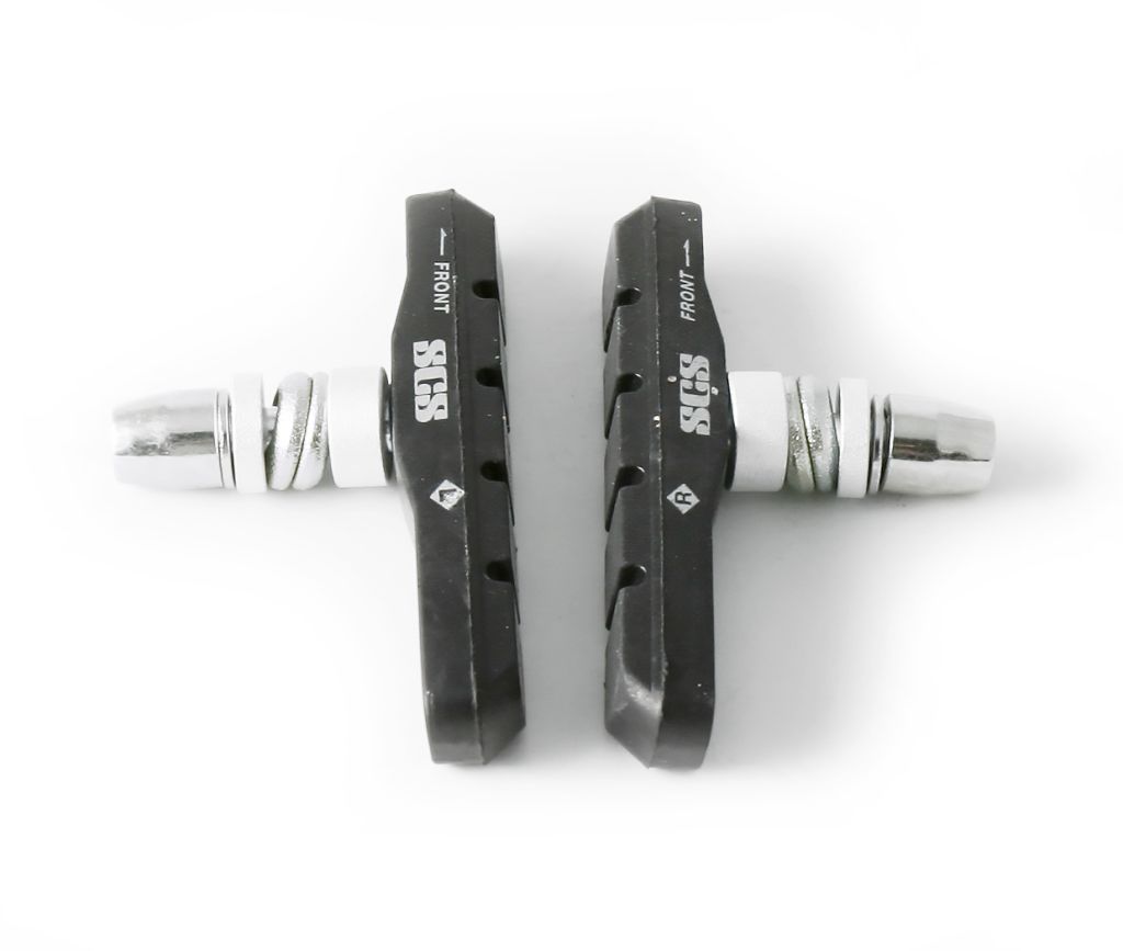 Тормозные колодки для тормозов типа V-Brake. Компаунд колодок является универсальным, подходящим для сухой и влажной погоды. Поставляются с регулировочными шаровыми шайбами, позволяющими отрегулировать положение при различных параметрах рам, вилок и ободов.