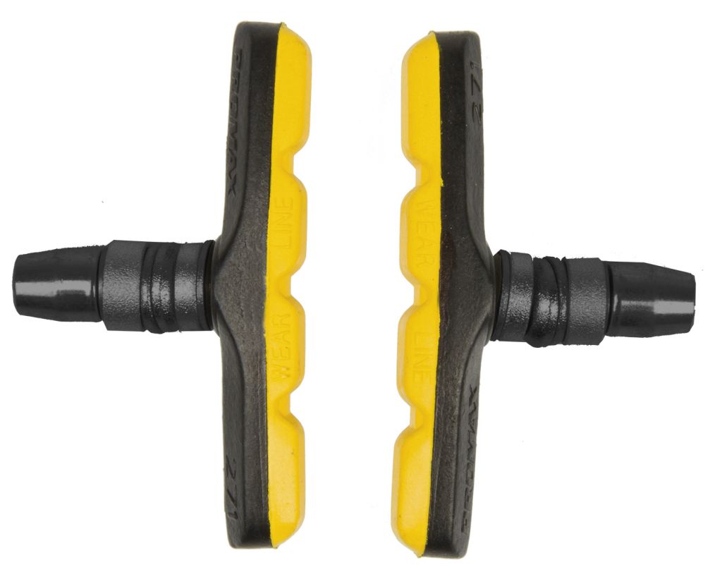 Тормозные колодки Promax 2711 для тормозов типа V-Brake. Компаунд колодок мягче стандартного, что обеспечивает лучший зацеп с тормозной поверхностью и, как следствие, более мощный тормозной импульс. Поставляются с регулировочными шаровыми шайбами, позволяющими отрегулировать положение при различных параметрах рам, вилок и ободов.