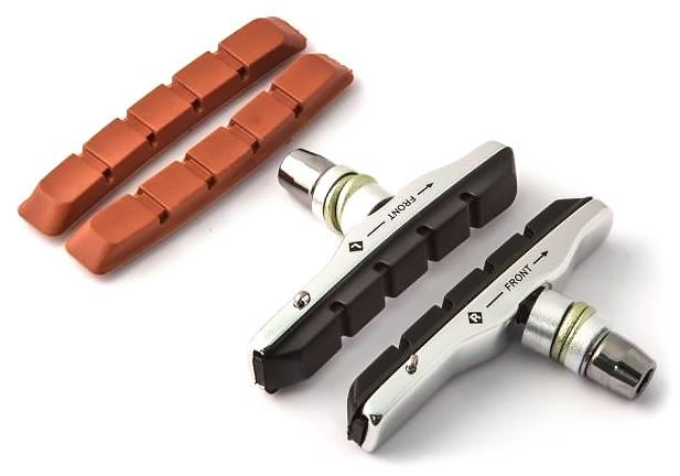 Комплект из картриджных тормозных колодок и запасных вкладышей Clark's CP-513. Основания колодок выполнены из алюминия, оси стальные с регулировочными шайбами. Состав вкладышей предполагает всепогодное использование с алюминиевыми оодами. Для горных, гибридных и туристических велосипедов.