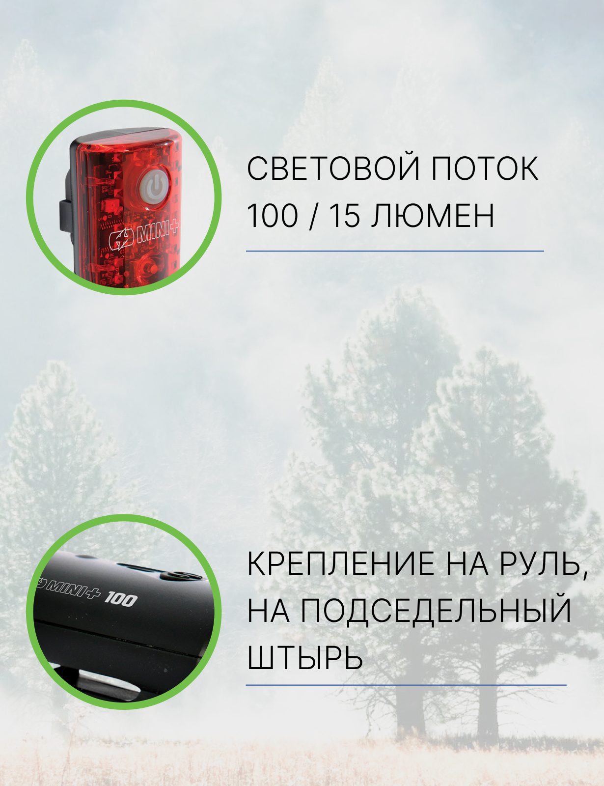 Основные характеристики заднего фонаря Mini+: