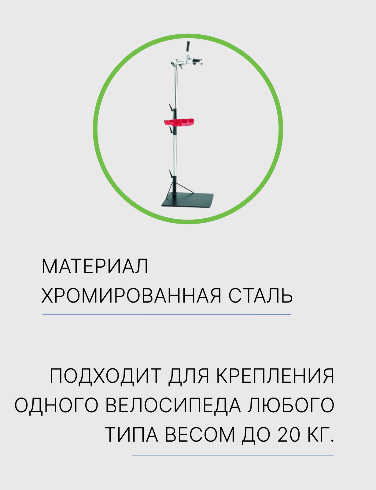 Peruzzo Cavalletto (361) - это специальная стойка, разработанная для ремонта и удобного обслуживания вашего велосипеда в условиях гаража или мастерской. Она выполнена из прочной хромированной стали. Подходит для крепления одного велосипеда любого типа весом до 20 кг. Фиксатор рассчитан под трубу шириной 2-5 см. Не рекомендуется крепить байки с карбоновыми подседельниками и рамами.