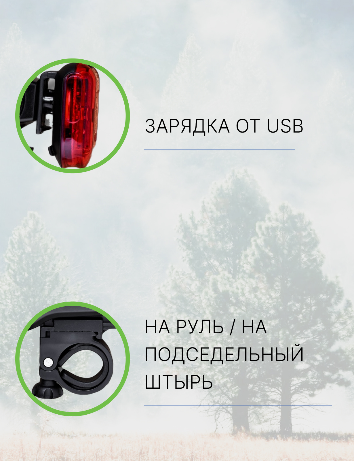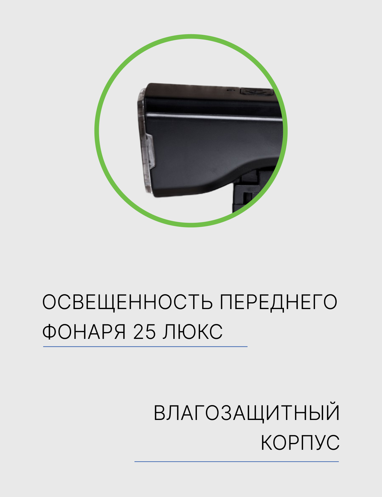 Особенности:Освещенность переднего фонаря 25 люкс, влагозащищенный корпус, зарядка от USB (кабель в комплекте)