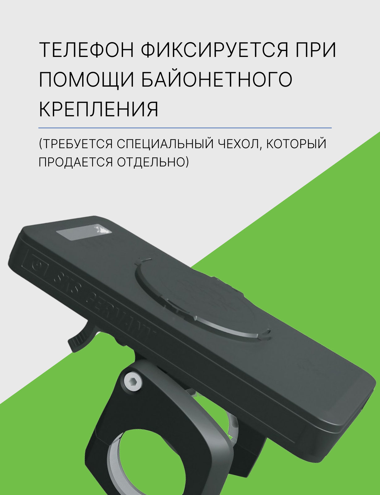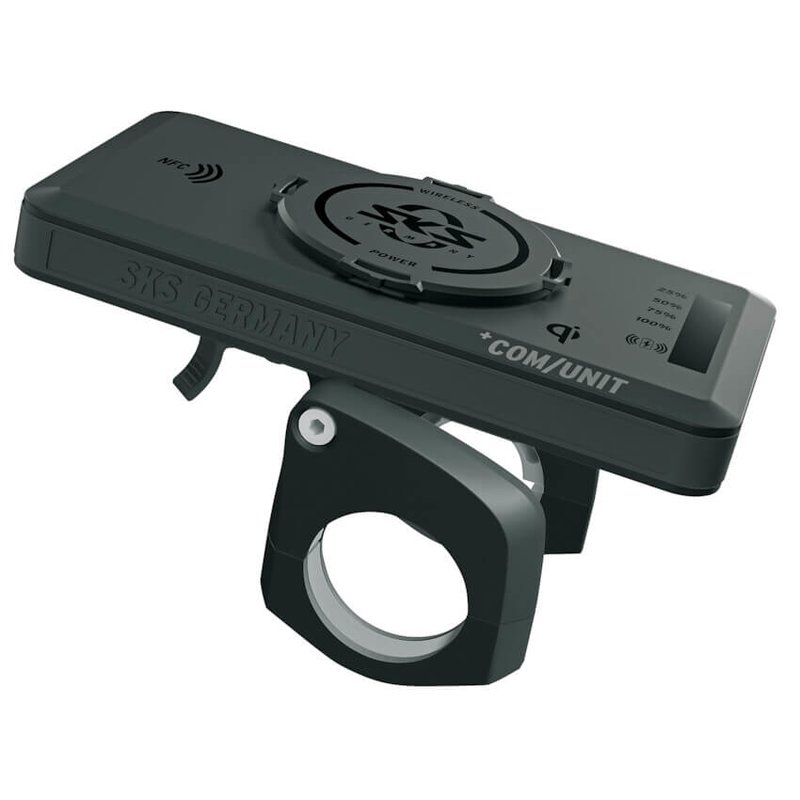 SKS Compit+ с зарядным модулем +COM/UNIT (11534) - это удобный пауэрбанк, который позволит дольше пользоваться вашим смартфоном при катании на велосипеде. Крепление устанавливается на руль велосипеда (под Ø22,2/25,4/31,8 мм). Модуль зарядки оснащен чипом NFC, благодаря чему можно заряжать смартфон беспроводным способом (если функция поддерживается). Емкость батареи составляет 5000 mAh. Телефон фиксируется при помощи байонетного крепления (требуется специальный чехол, который продается отдельно). Черный цвет.