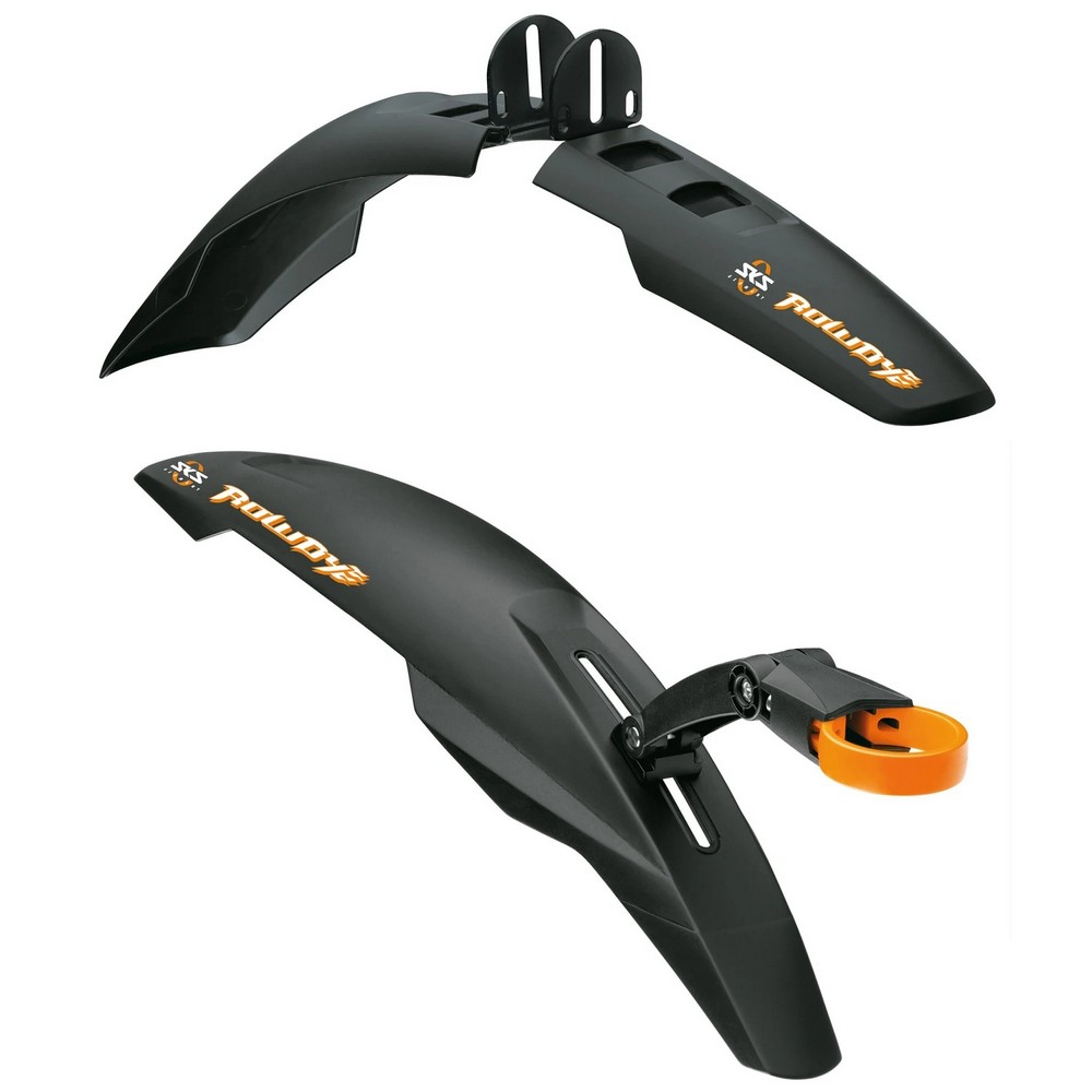 Для ребенка на велосипеде не существует преград, особенно притягательными выглядят лужи после дождя. Именно поэтому комплект крыльев SKS Rowdy Set будет важным дополнением для детского велосипеда. Крылья помогут защитить одежду маленького непоседы от попадания грязи и воды во время езды. Подходят для колес 20-24ʺ. Заднее крыло крепится к подседельному штырю ⌀28-35 мм. Изготовлены из высокопрочного пластика чёрного цвета. Вес изделия - 207 грамм.