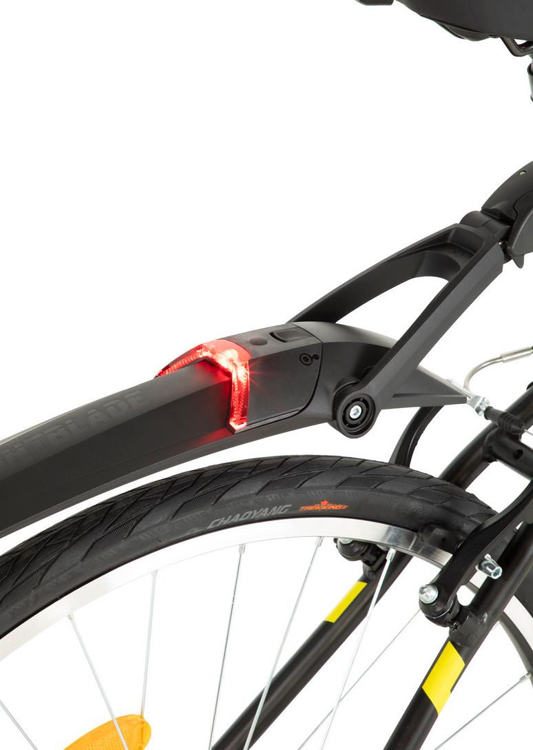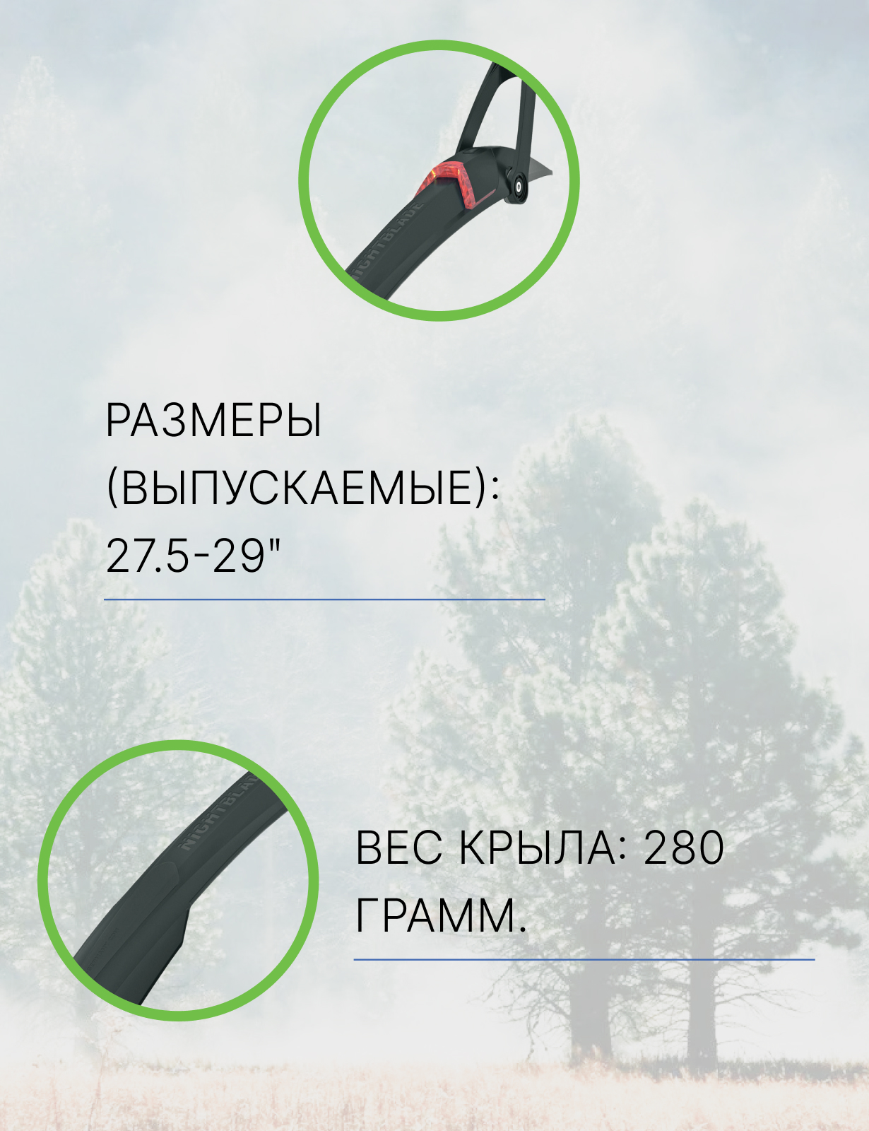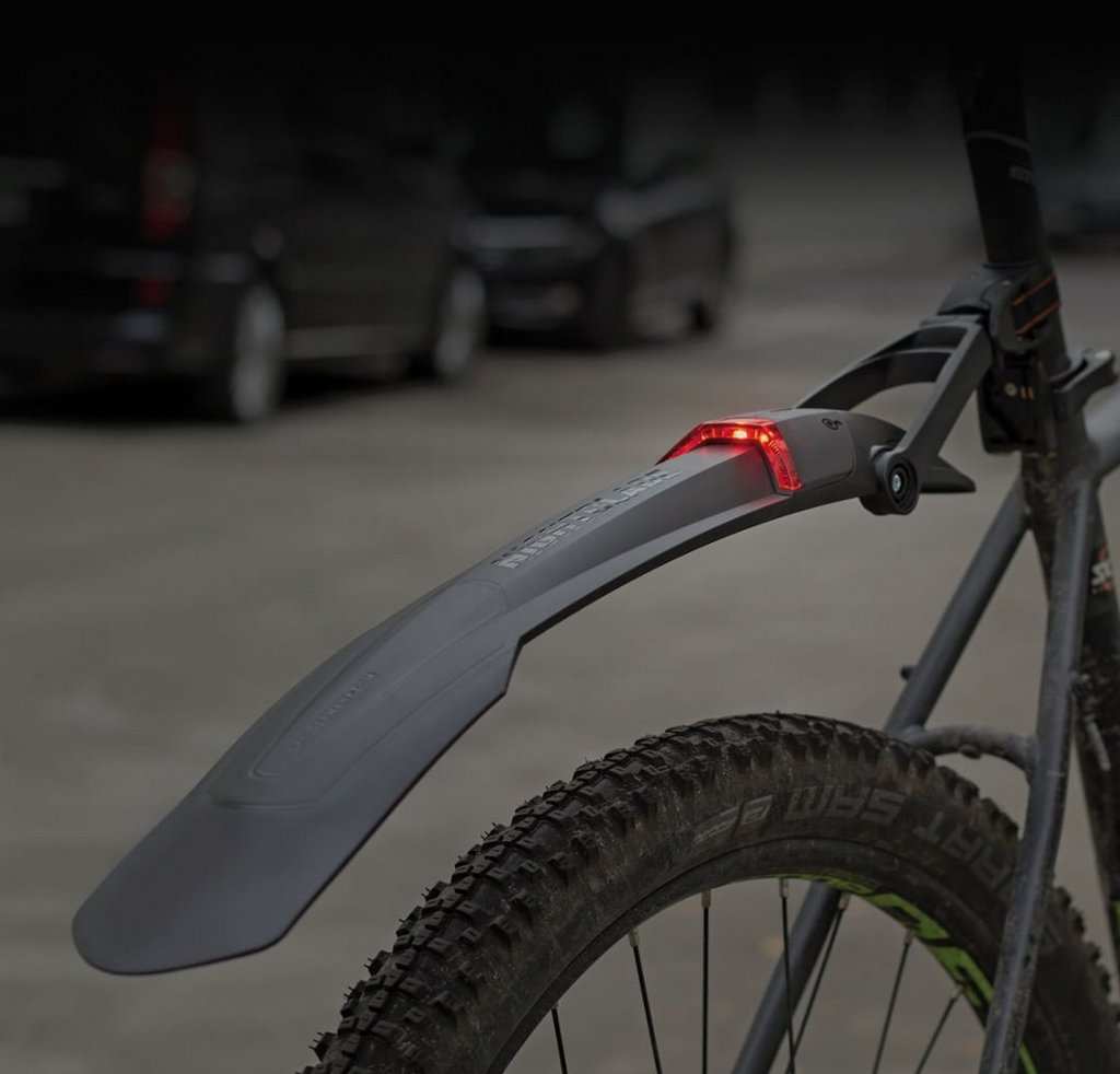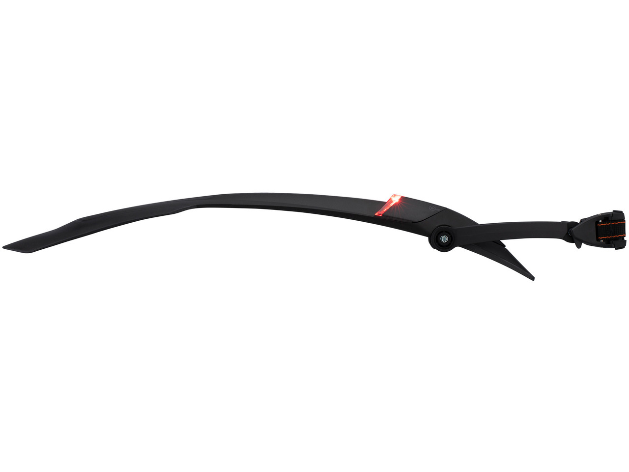 Заднее крыло SKS Nightblade имеет уникальную конструкцию со встроенным габаритным фонариком (время работы 7 часов, зарядка 1 час). Разработано для горных велосипедов с диаметром колес 27,5-29ʺ и широкими покрышками (полуфэтбайки). Крепится на подседельный штырь диаметром до 35 мм с помощью быстросъемного ремешка. Изготовлено из прочного пластика черного цвета. Длина крыла - 620 мм. Вес - 280 грамм.