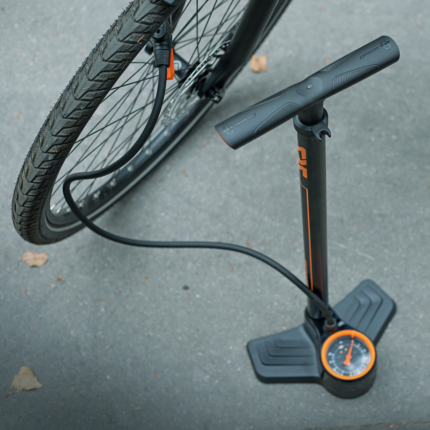 Компактный, прочный и надежный — напольный насос SKS (модель с аналоговым манометром) станет незаменимым помощником для регулярного обслуживания велосипеда. Благодаря стальному цилиндру и прочному пластиковому основанию, он выдерживает интенсивное использование, а удобная Т-образная ручка обеспечивает комфорт при накачивании. Насос легко нагнетает давление до 10 бар, что делает его подходящим для шоссейных, городских и горных велосипедов. Оптимизированная головка Multi Valve «MV Easy» совместима со всеми типами вентилей — Presta, Schrader и Dunlop. Удобный аналоговый манометр с двойной шкалой (бар/psi) позволяет точно контролировать давление.