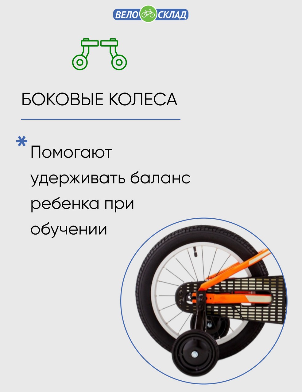 Особенности велосипеда: Алюминиевая рама, Боковые колеса, Защита цепи, Крепления для боковых колес, Ножной тормоз.