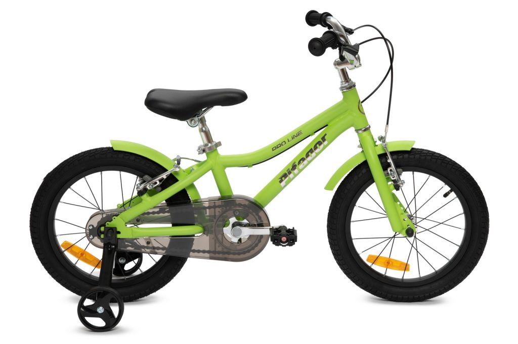 Велосипед, предназначенный для детей в возрасте от трех до шести лет, без переключения передач. Технические особенности: алюминиевая рама, жесткая алюминиевая вилка, одинарные алюминиевые обода, надежные ободные тормоза Aluminium V-brake, полная защита цепи, длинные крылья, катафоты, съемные боковые колеса, подножка, звонок, насос, накидной ключ и мультитул для сборки, фонарик. Подходит для прогулочного катания в городских условиях и по несложным маршрутам в лесу. Максимальная нагрузка: до 50 кг. Диаметр колес - 16 дюймов. Вес - 8,5 кг.
