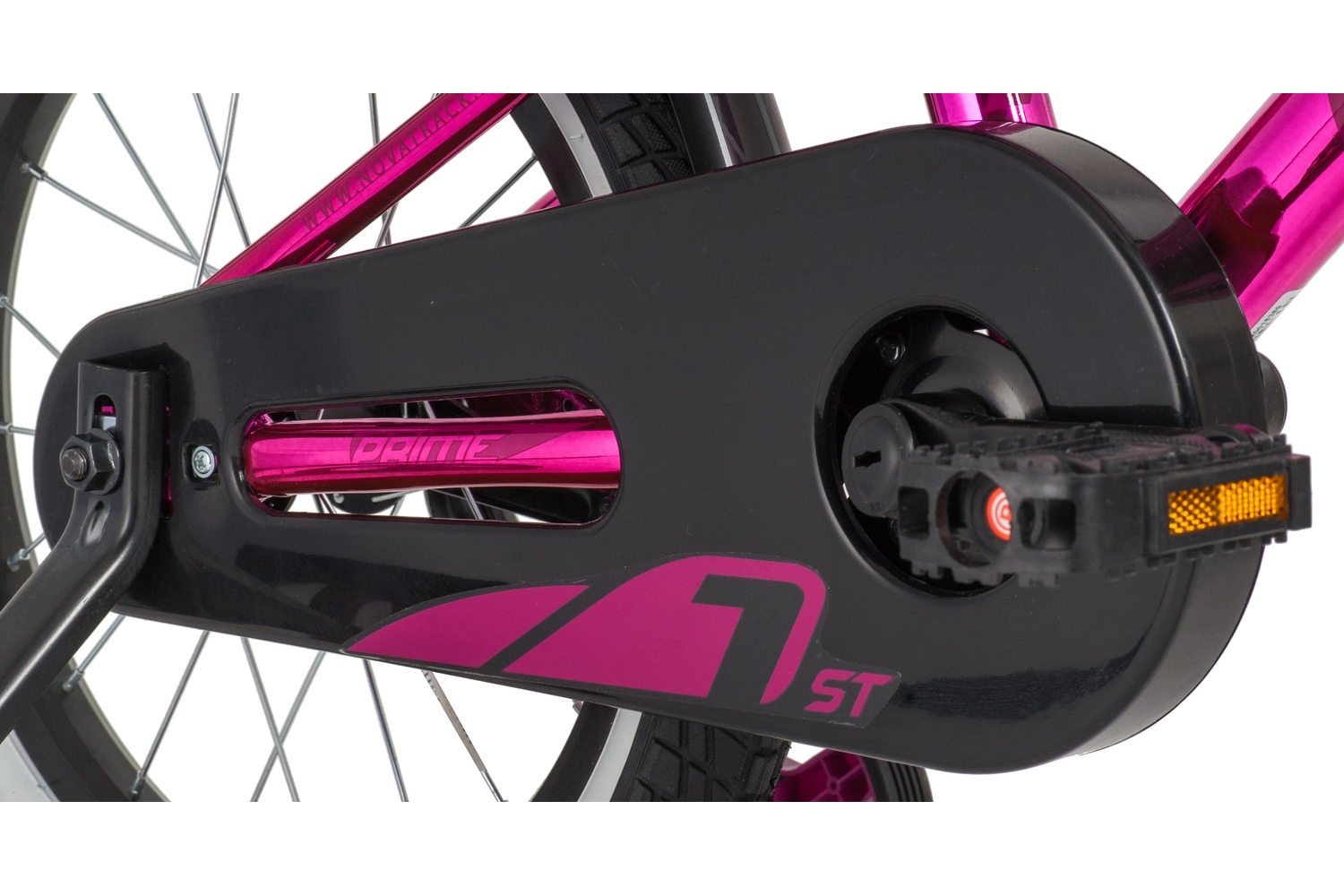 Велосипед, предназначенный для детей в возрасте от трех до шести лет, без переключения передач. Технические особенности: алюминиевая рама, жесткая стальная вилка, одинарные алюминиевые обода, ножные педальные тормоза, полная защита цепи, съемные боковые колеса, пластиковые крылья, звонок. Подходит для обучения и легких прогулок. Диаметр колес - 16 дюймов. Вес - 9 кг.