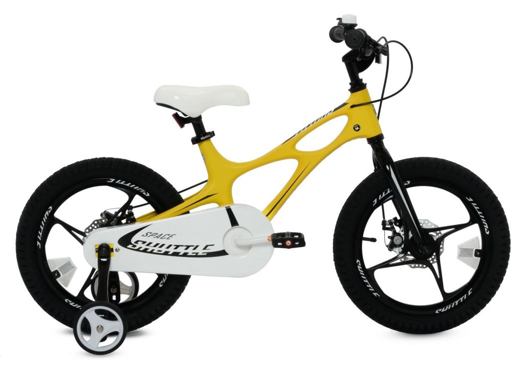 Велосипед, предназначенный для детей в возрасте от трех до шести лет, без переключения передач. Технические особенности: легкая магниевая рама, жесткая стальная вилка, литые магниевые обода, дисковые механические тормоза (роторы 90/90 мм), полная защита цепи, дополнительные колеса, звонок. Подходит для обучения и прогулочного катания в городских условиях. Диаметр колес - 16 дюймов. Вес - 10,1 кг.