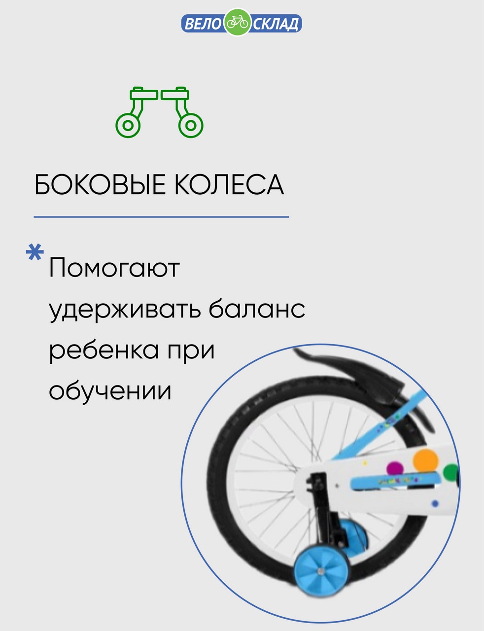 Боковые колеса, Защита цепи, Звонок, Корзина, Крепления для боковых колес, Крылья, Ножной тормоз