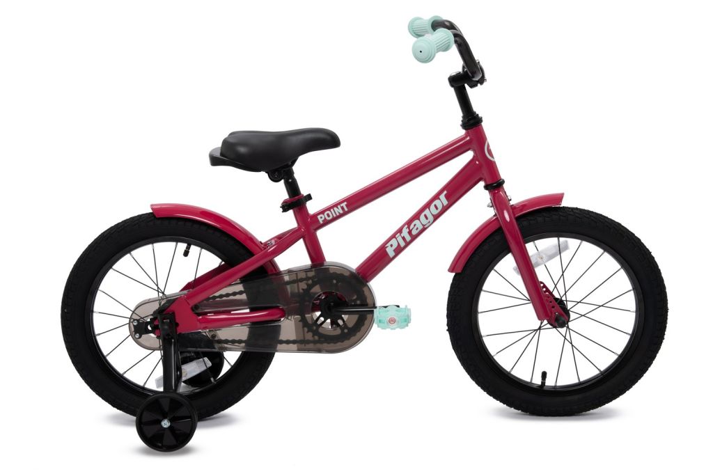 Велосипед, предназначенный для детей в возрасте от трех до шести лет, без переключения передач. Технические особенности: прочная стальная рама, жесткая стальная вилка, одинарные стальные обода, ножной педальный тормоз, съемные боковые колеса, полная защита цепи, крылья, звонок, насос, ключи для сборки велосипеда, набор стикеров. Подходит для обучения и прогулочного катания в городских условиях. Диаметр колес - 16 дюймов. Вес - 9,1 кг.