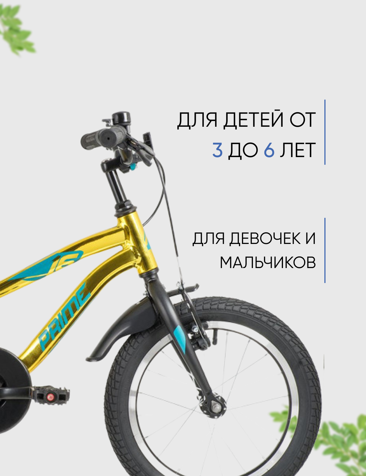 Особенности велосипеда: Алюминиевая рама, Боковые колеса, Защита цепи, Звонок, Катафоты, Крепления для боковых колес, Крылья.