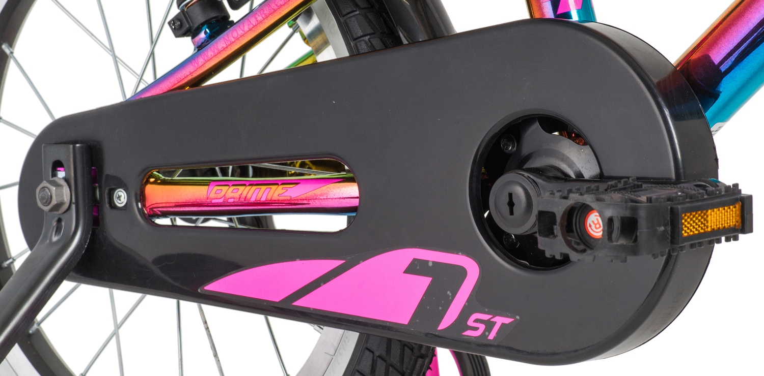 Велосипед, предназначенный для детей в возрасте от трех до шести лет, без переключения передач. Технические особенности: алюминиевая рама, жесткая стальная вилка, одинарные алюминиевые обода, надежные ободные тормоза V-brake, полная защита цепи, съемные боковые колеса, пластиковые крылья, звонок. Подходит для обучения и легких прогулок. Диаметр колес - 16 дюймов. Вес - 9,3 кг.