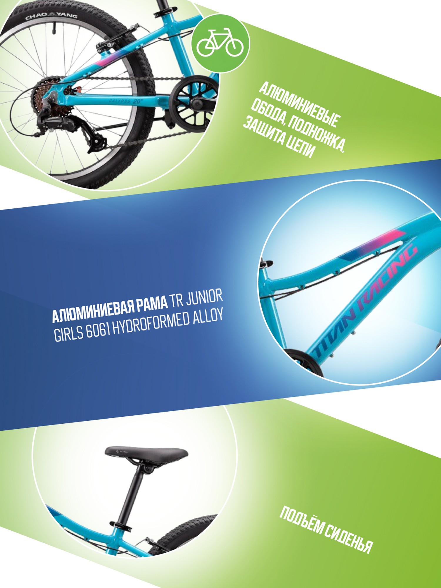 Велосипед, предназначенный для девочек в возрасте от восьми до тринадцати лет, с оборудованием начального любительского класса Microshift, 7 скоростей. Технические особенности: алюминиевая рама TR Junior Girls 6061 Hydroformed Alloy, амортизационная вилка SR Suntour M3010 AL (ход 40 мм), алюминиевые обода TR XP163C, надежные ободные тормоза TR V-Brake. Подходит для обучения и прогулочного катания в городских условиях. Диаметр колес - 20 дюймов. Вес - 10,4 кг.