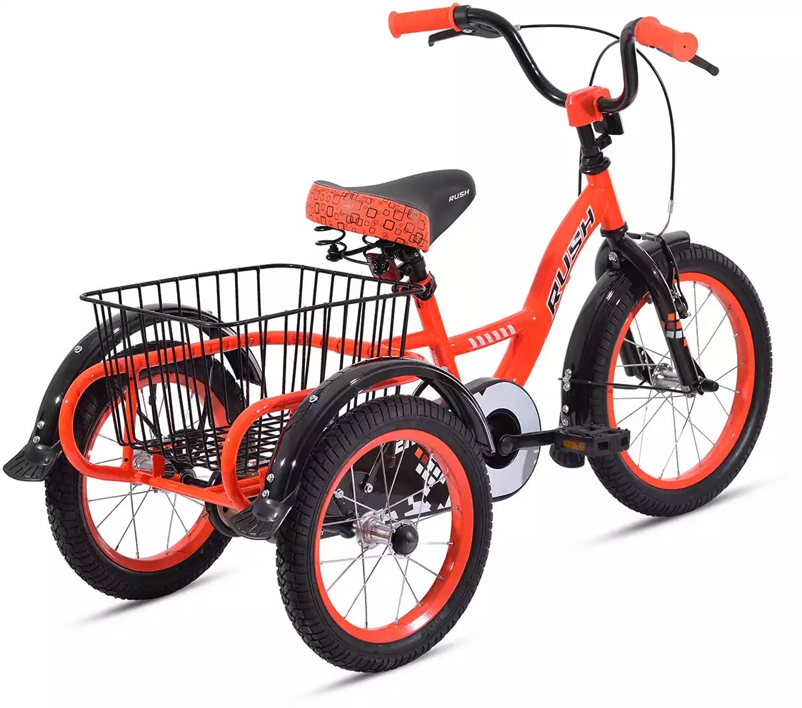 Трехколесный велосипед, предназначенный для детей в возрасте от трех до шести лет, без переключения передач. Технические особенности: прочная стальная рама, жесткая стальная вилка, одинарные обода, передний тормоз - ободной V-brake, задний - барабанный, защита цепи, крылья с брызговиками, задняя корзина, звонок, катафоты. Подходит для обучения и прогулочного катания в городских условиях. Диаметр колес - 16 дюймов. Вес - 12,5 кг.