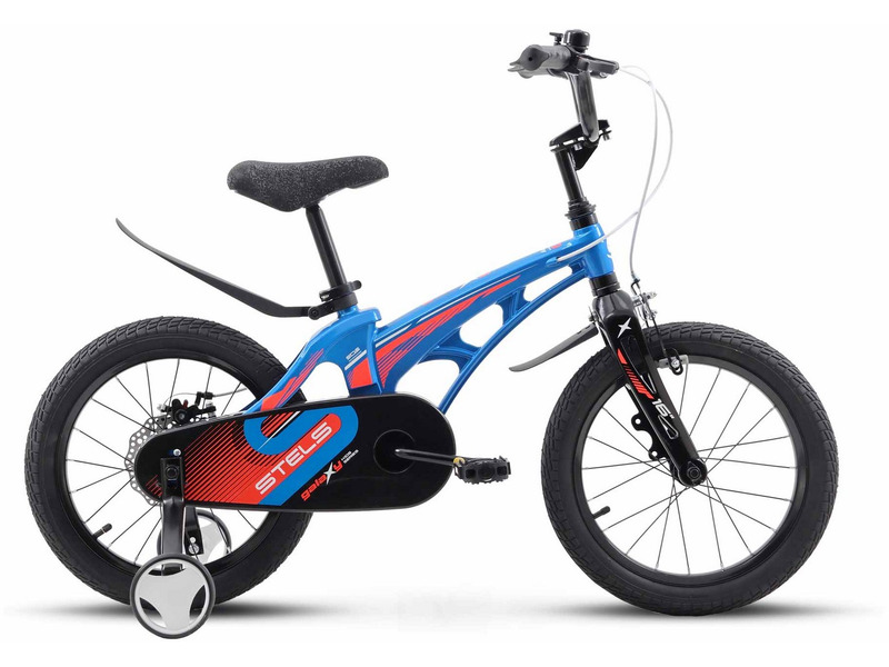 Велосипед, предназначенный для детей в возрасте от трех до шести лет, без переключения передач. Технические особенности: легкая рама из магниевого сплава, жесткая вилка из магниевого сплава, одинарные стальные обода, передний тормоз - ободной, задний тормоз - дисковый механический (ротор 140 мм), защита цепи, съемные боковые колеса, пластиковые крылья, звонок. Подходит для обучения и прогулочного катания в городских условиях. Диаметр колес - 16 дюймов. Вес - 9 кг.
