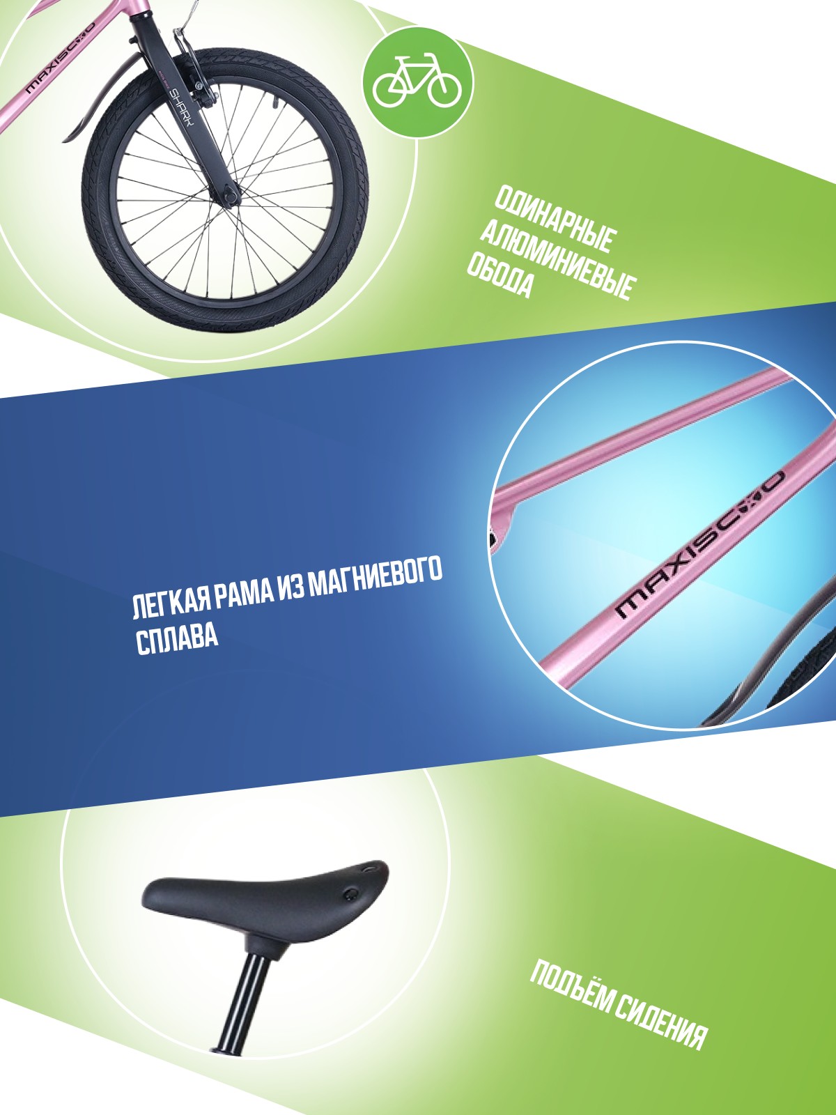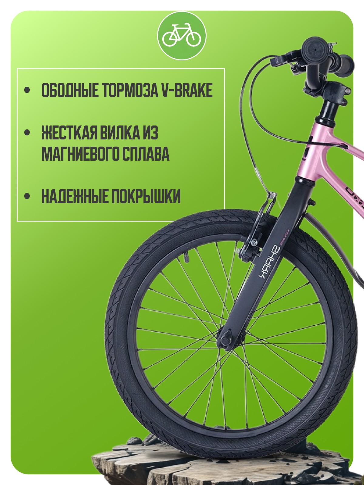 Велосипед, предназначенный для детей в возрасте от трех до шести лет, без переключения передач. Технические особенности: легкая рама из магниевого сплава (частично скрытая прокладка тросов, крепление тормозного калипера IS), жесткая вилка из магниевого сплава, одинарные алюминиевые обода (под AV ниппель), надежные ободные тормоза V-Brake, полная защита цепи, пластиковые крылья, звонок. Подходит для обучения и прогулочного катания в городских условиях. Диаметр колес - 16 дюймов. Вес - 8 кг.