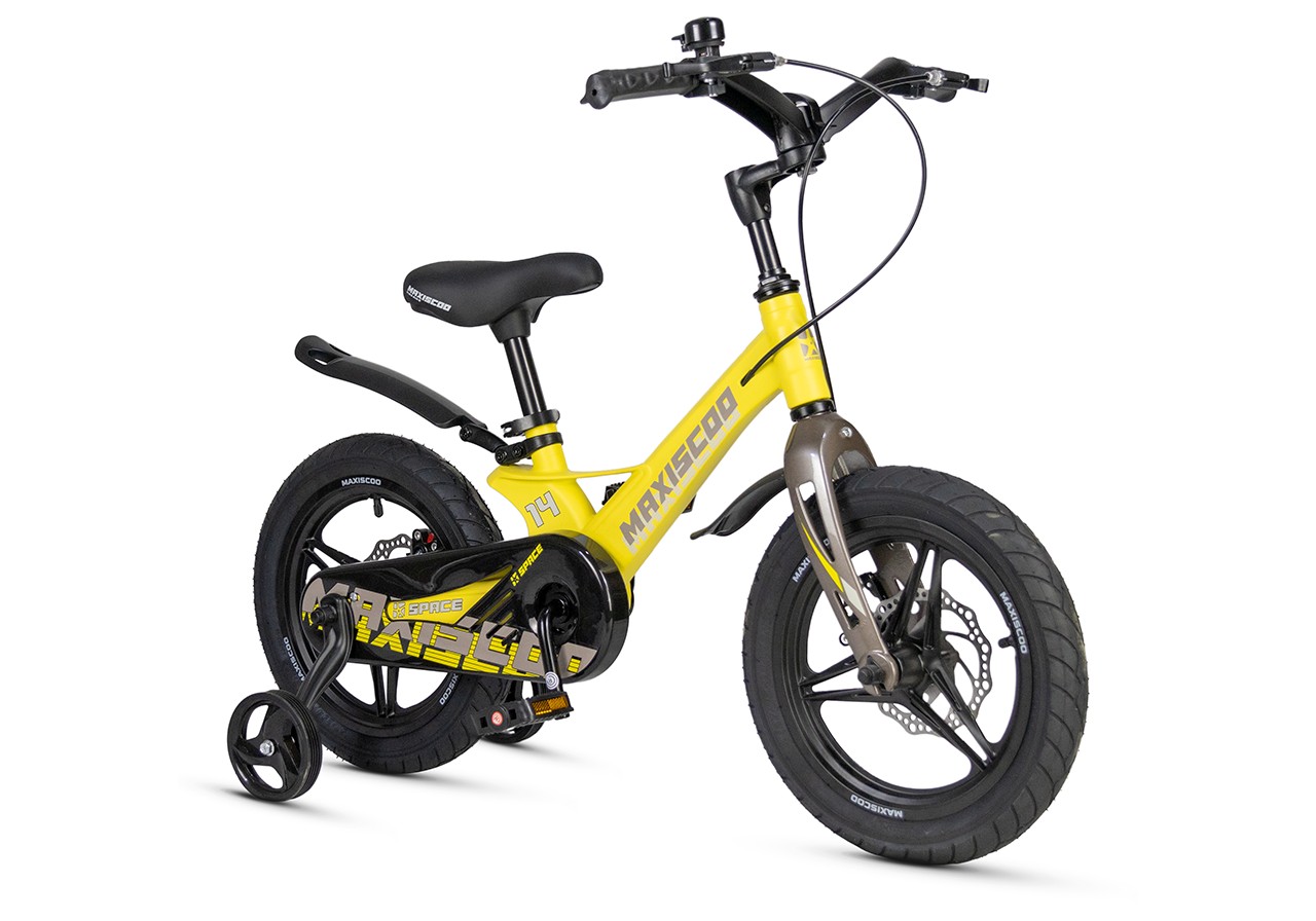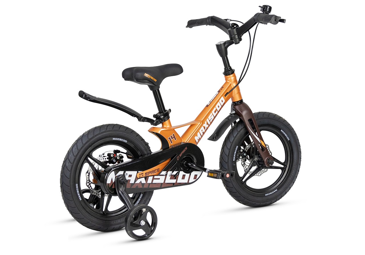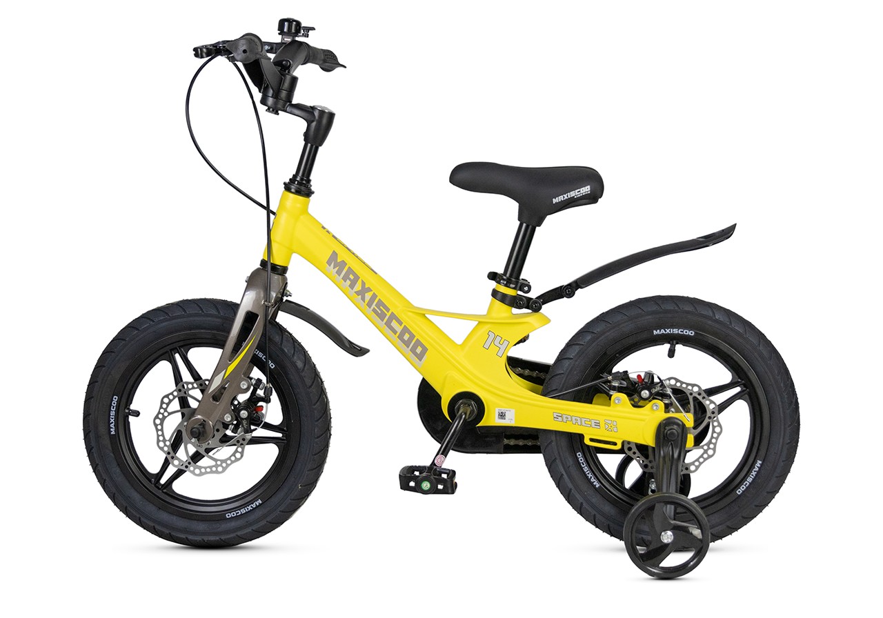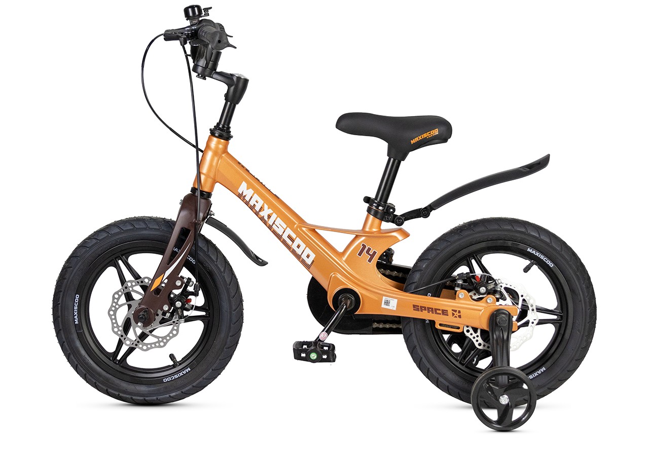 Велосипед, предназначенный для детей в возрасте от двух до четырех лет, без переключения передач. Технические особенности: легкая рама из магниевого сплава (частично скрытая прокладка тросов, крепление тормозного калипера IS), жесткая вилка из магниевого сплава (крепление тормозного калипера IS), литые колеса из магниевого сплава (под AV ниппель), дисковые механические тормоза (роторы 140/140 мм), полная защита цепи, съемные боковые колеса, пластиковые крылья, звонок. Подходит для обучения и прогулочного катания в городских условиях. Диаметр колес - 14 дюймов. Вес - 7,4 кг.
