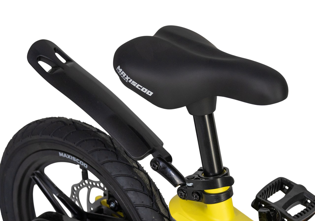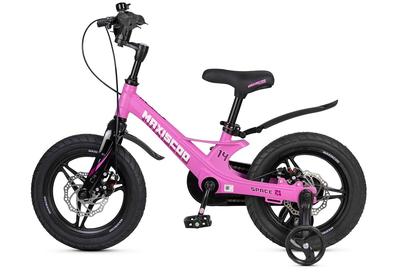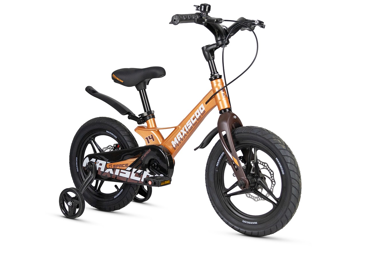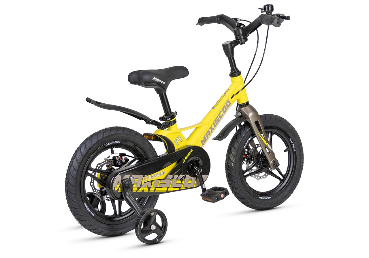 Велосипед, предназначенный для детей в возрасте от двух до четырех лет, без переключения передач. Технические особенности: легкая рама из магниевого сплава (частично скрытая прокладка тросов, крепление тормозного калипера IS), жесткая вилка из магниевого сплава (крепление тормозного калипера IS), литые колеса из магниевого сплава (под AV ниппель), дисковые механические тормоза (роторы 140/140 мм), полная защита цепи, съемные боковые колеса, пластиковые крылья, звонок. Подходит для обучения и прогулочного катания в городских условиях. Диаметр колес - 14 дюймов. Вес - 7,4 кг.
