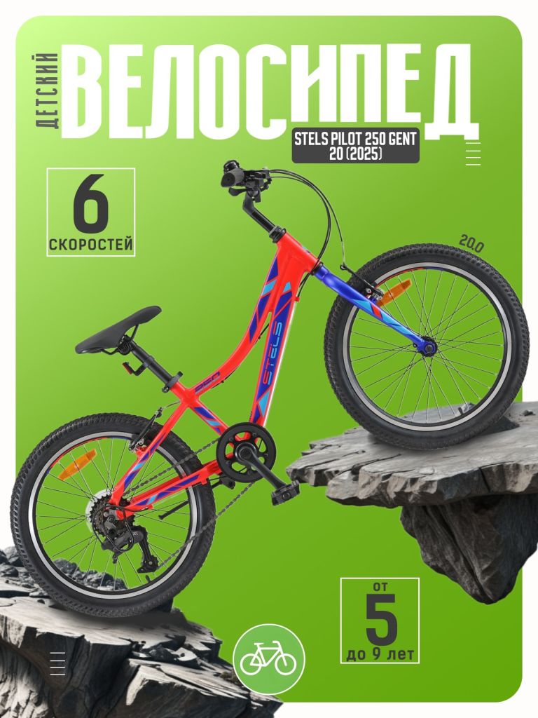 Велосипед, предназначенный для детей в возрасте от пяти до девяти лет, с оборудованием начального класса Shimano, 6 скоростей. Технические особенности: легкая алюминиевая рама (кареточный стакан BSA, рулевой стакан ZS), жесткая стальная вилка (дропауты 10 мм), двойные алюминиевые обода (под AV ниппель), надежные ободные тормоза V-Brake, звонок, подножка, катафоты. Подходит для прогулочного катания в городских условиях и по несложным маршрутам в лесу. Диаметр колес - 20 дюймов. Вес - 10,76 кг.
