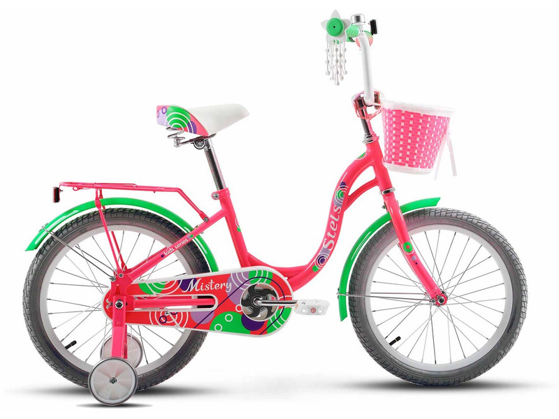 Велосипед, предназначенный для детей в возрасте от четырех до восьми лет, без переключения передач. Технические особенности: прочная стальная рама, жесткая стальная вилка, одинарные стальные обода, ножной педальный тормоз, полная защита цепи, съемные боковые колеса, крылья, задний багажник, передняя корзинка, мягкая накладка на руле, катафоты, звонок. Подходит для обучения и прогулочного катания в городских условиях. Диаметр колес - 18 дюймов. Вес - 12 кг.