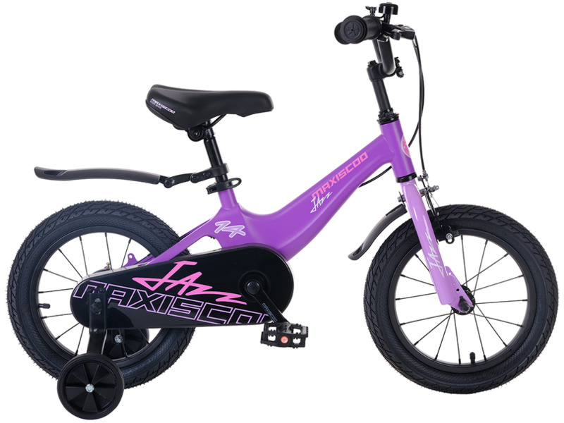 Велосипед, предназначенный для детей в возрасте от двух до четырех лет, без переключения передач. Технические особенности: легкая рама из магниевого сплава, жесткая стальная вилка, одинарные стальные обода, передний клещевой тормоз U-типа + задний барабанный, съемные боковые колеса, полная защита цепи, пластиковые крылья, звонок, катафоты. Подходит для обучения и прогулочного катания в городских условиях. Диаметр колес - 14 дюймов. Вес - 8,5 кг.