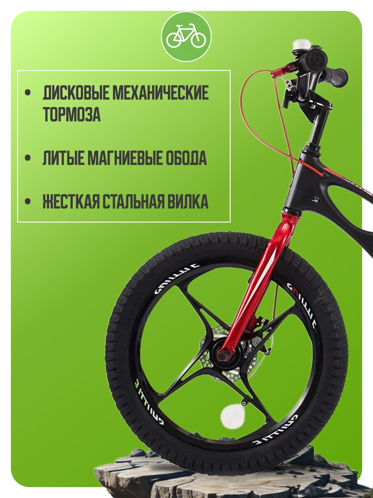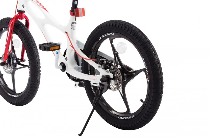 Велосипед, предназначенный для детей в возрасте от четырех до восьми лет, без переключения передач. Технические особенности: легкая магниевая рама, жесткая стальная вилка, литые магниевые обода, дисковые механические тормоза (роторы 90/90 мм), полная защита цепи, дополнительные колеса, звонок. Подходит для обучения и прогулочного катания в городских условиях. Диаметр колес - 18 дюймов. Вес - 11 кг.