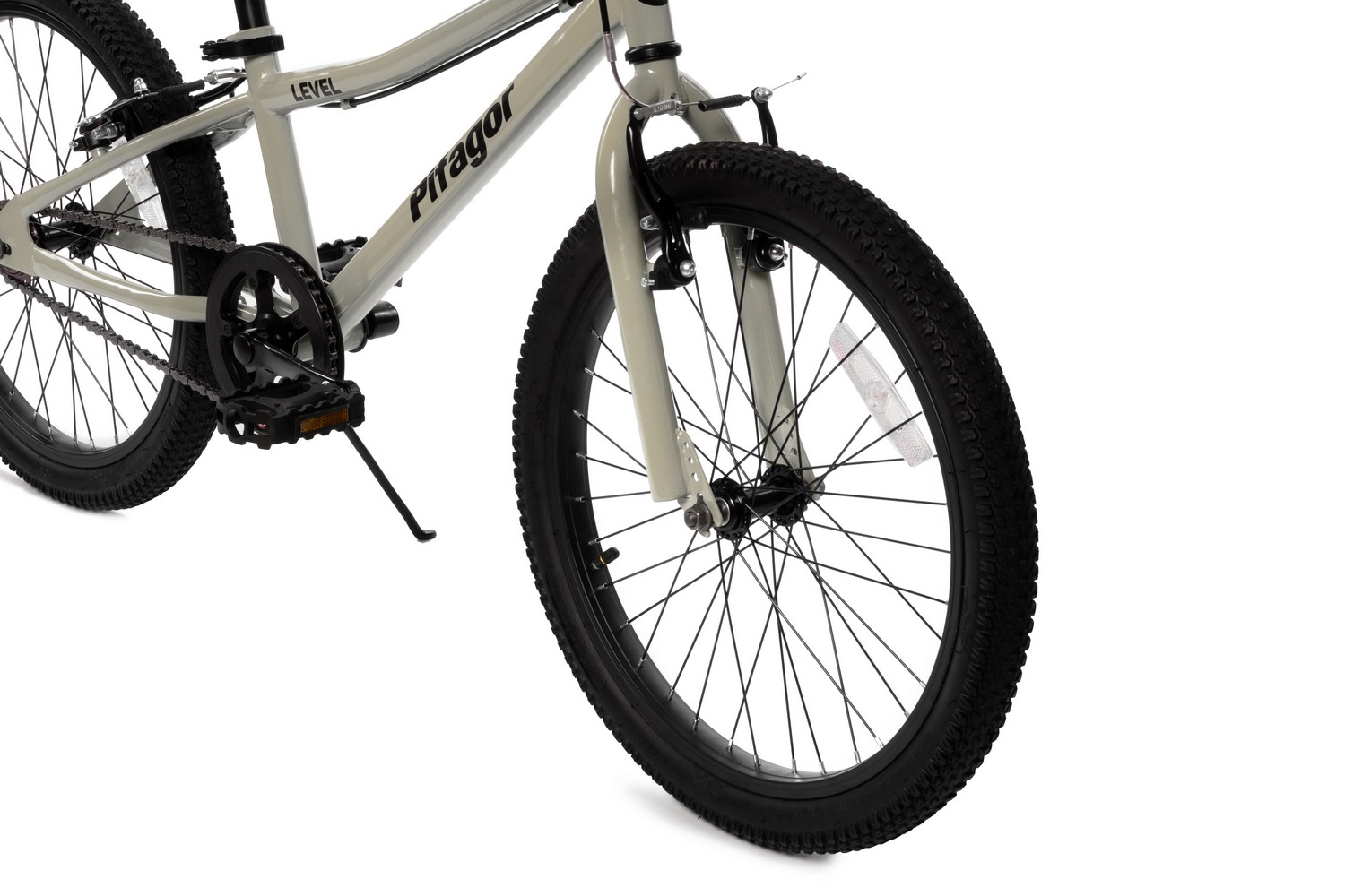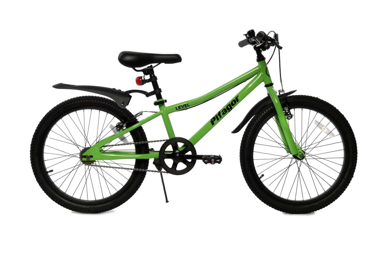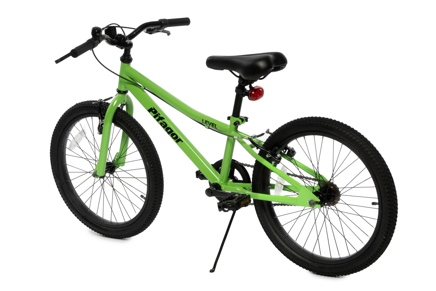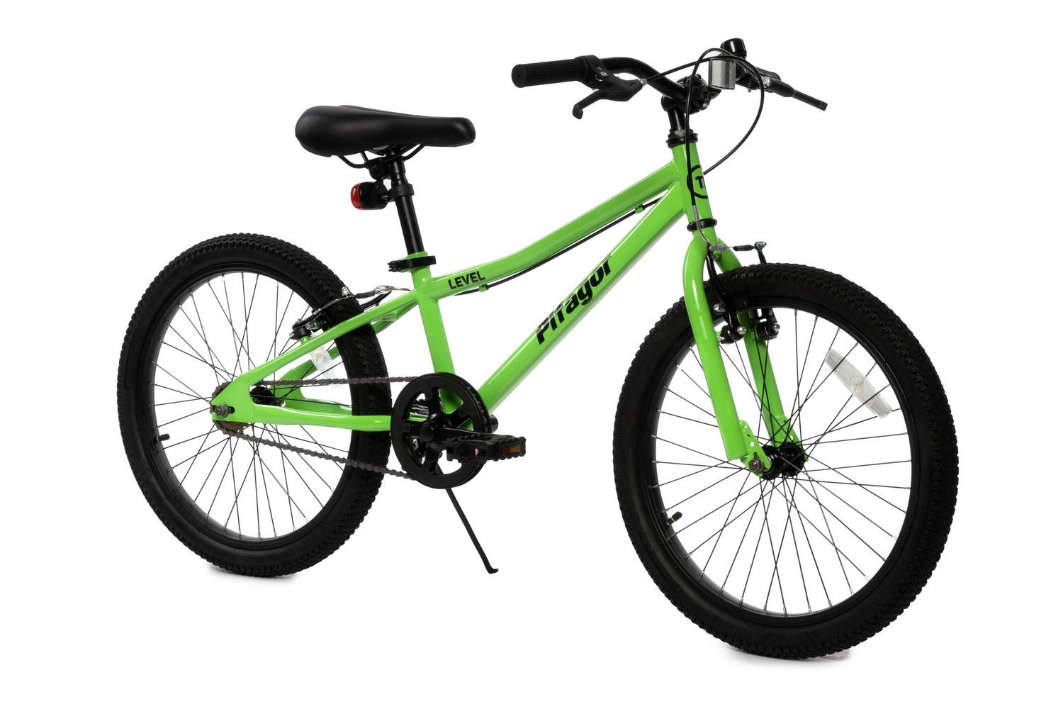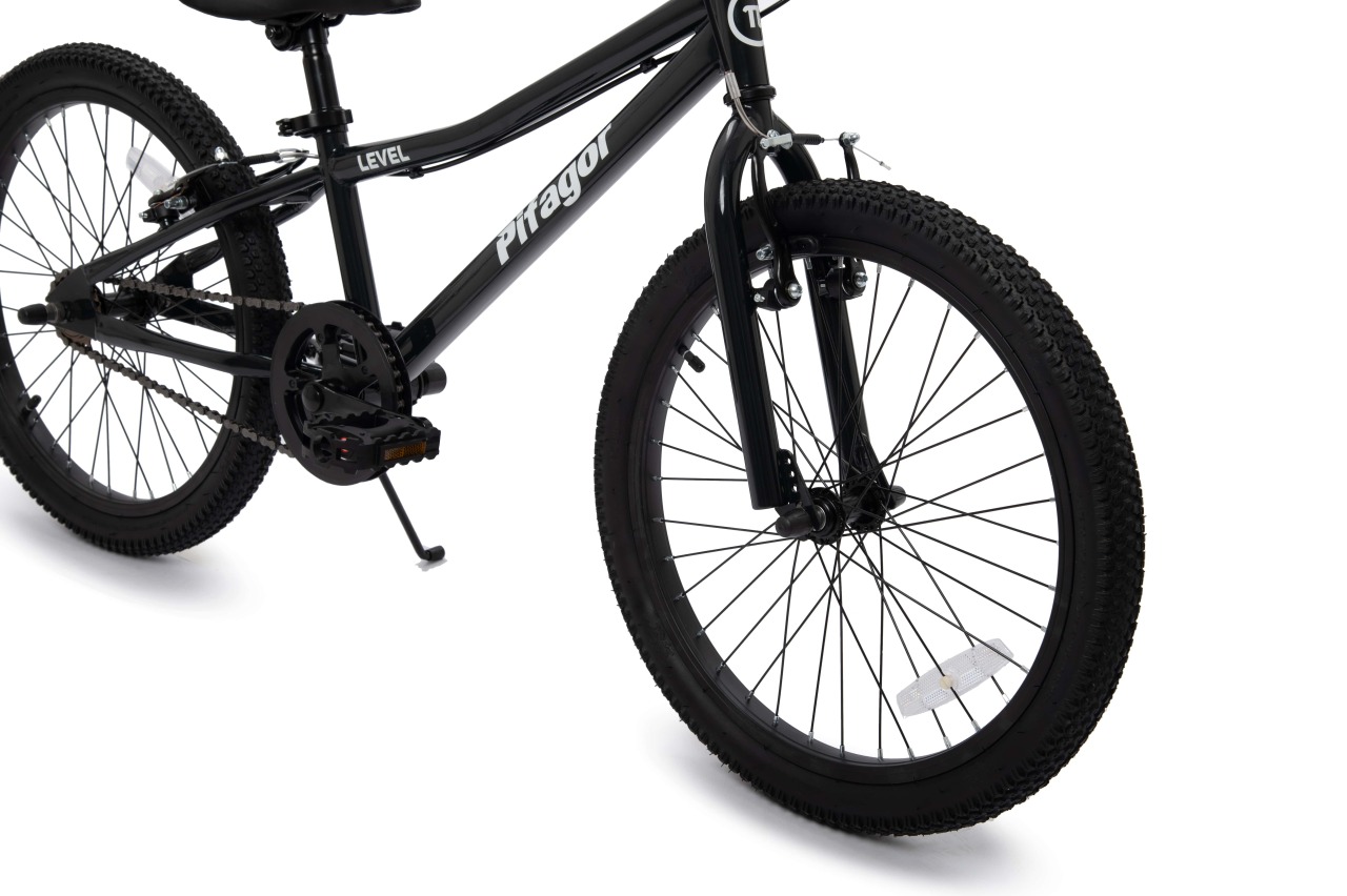 Велосипед, предназначенный для детей в возрасте от пяти до девяти лет, без переключения передач. Технические особенности: прочная стальная рама, жесткая стальная вилка, одинарные стальные обода, надежные ободные тормоза V-Brake, подножка, катафоты. Подходит для обучения и прогулочного катания в городских условиях. Диаметр колес - 20 дюймов. Вес - 10,5 кг.