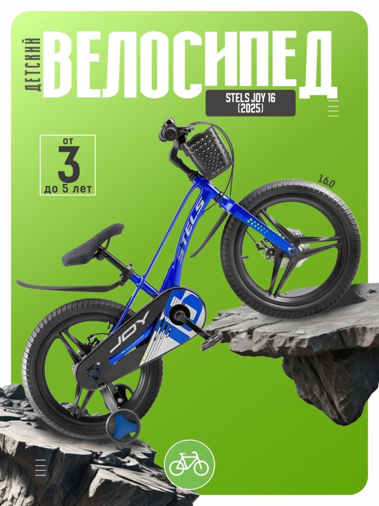 Велосипед, предназначенный для детей в возрасте от трех до шести лет, без переключения передач. Технические особенности: легкая рама из магниевого сплава, жесткая вилка из магниевого сплава, литые магниевые обода (под AV ниппель), дисковые механические тормоза (роторы 140/140 мм), защита цепи, съемные боковые колеса, пластиковые крылья, звонок, передняя корзинка. Подходит для обучения и прогулочного катания в городских условиях. Диаметр колес - 16 дюймов. Вес - 9,5 кг.