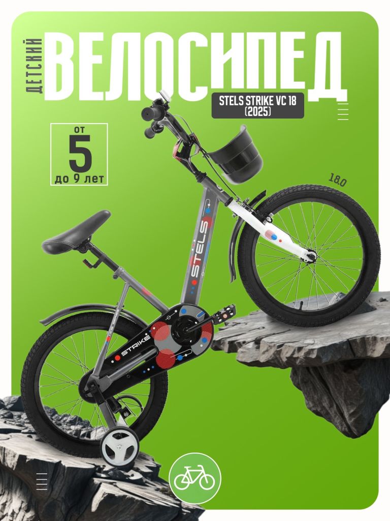 Велосипед, предназначенный для детей в возрасте от четырех до восьми лет, без переключения передач. Технические особенности: прочная стальная рама, жесткая стальная вилка, одинарные стальные обода (под ниппель AV), передний клещевой тормоз и ножной педальный тормоз, съемные боковые колеса, полная защита цепи, крылья, передняя корзинка, катафоты, звонок. Подходит для обучения и прогулочного катания в городских условиях. Диаметр колес - 18 дюймов. Вес - 13 кг.