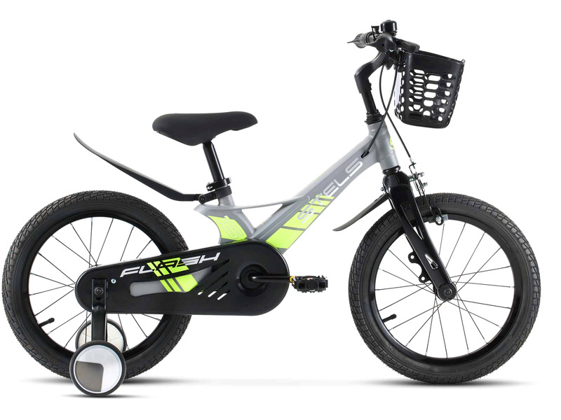 Велосипед, предназначенный для детей в возрасте от трех до шести лет, без переключения передач. Технические особенности: легкая рама из магниевого сплава (скрытая проводка), жесткая вилка из магниевого сплава (крепление калипера IS), одинарные стальные обода (под AV ниппель), передний тормоз - ободной клещевой, задний тормоз - барабанный (роллерный), полная защита цепи, пластиковые крылья, съемные боковые колеса, передняя корзинка, звонок. Подходит для обучения и прогулочного катания в городских условиях. Диаметр колес - 16 дюймов. Вес - 8,5 кг.