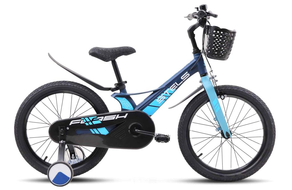 Велосипед, предназначенный для детей в возрасте от четырех до восьми лет, без переключения передач. Технические особенности: легкая рама из магниевого сплава (скрытая проводка), жесткая вилка из магниевого сплава (крепление калипера IS), одинарные стальные обода (под AV ниппель), передний тормоз - ободной клещевой, задний тормоз - барабанный (роллерный), полная защита цепи, пластиковые крылья, съемные боковые колеса, передняя корзинка, звонок. Подходит для обучения и прогулочного катания в городских условиях. Диаметр колес - 18 дюймов. Вес - 9,5 кг.