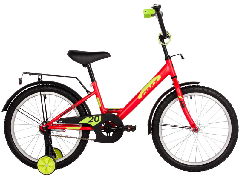 Велосипед, предназначенный для детей в возрасте от пяти до девяти лет, без переключения передач. Технические особенности: прочная стальная рама, жесткая стальная вилка, одинарные алюминиевые обода, ножные педальные тормоза, защита цепи, съемные боковые колеса, крылья, задний багажник, катафоты, мягкая накладка на руль, звонок. Подходит для обучения и прогулочного катания в городских условиях. Диаметр колес - 20 дюймов. Вес - 12,5 кг.