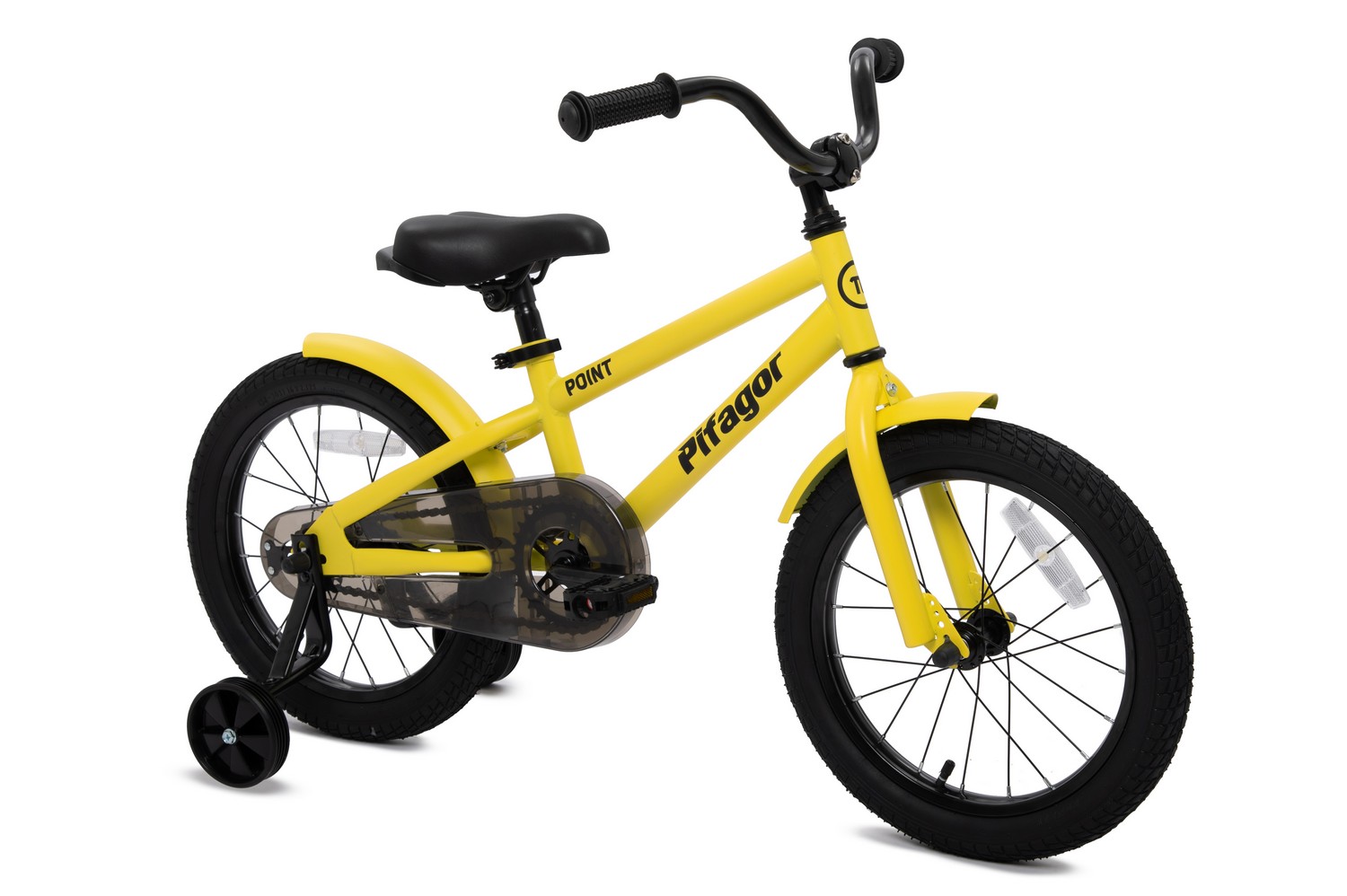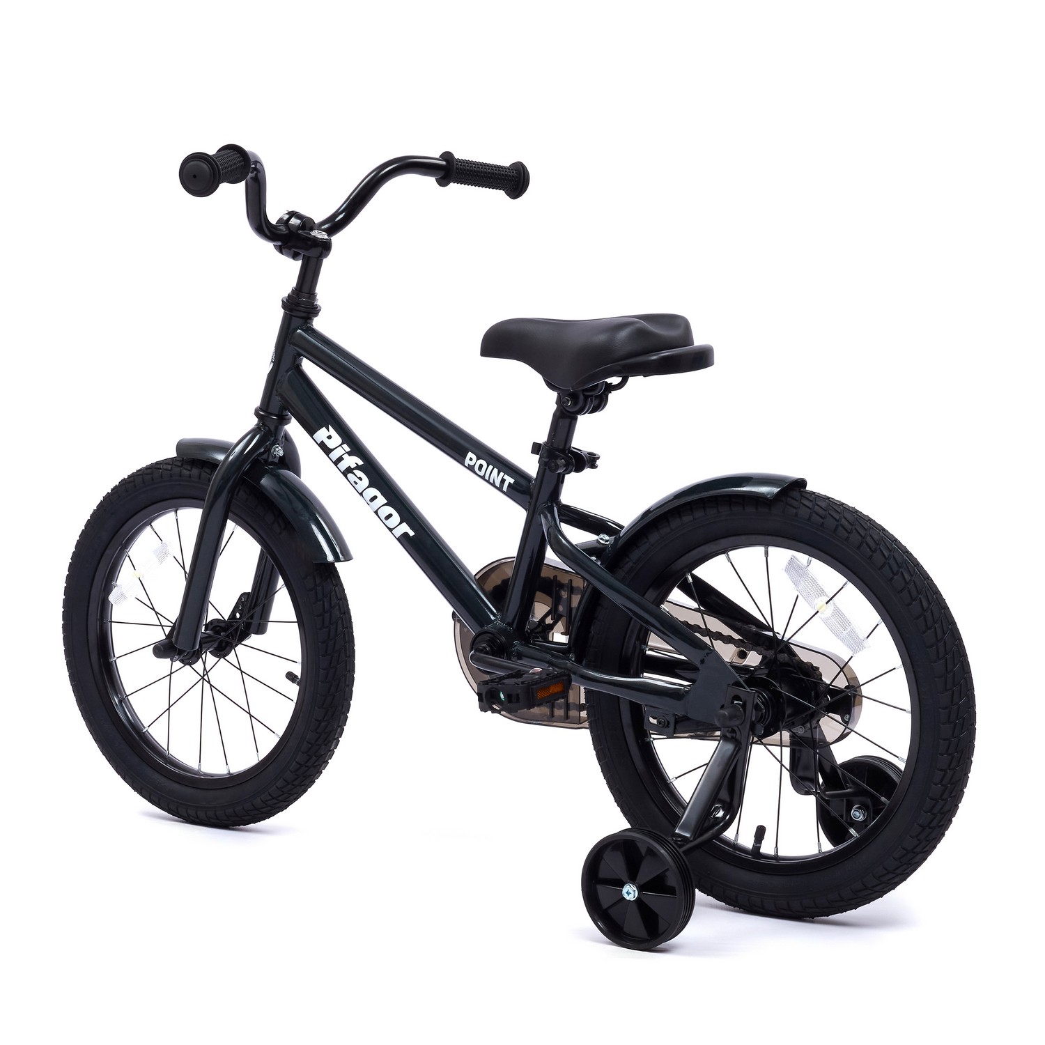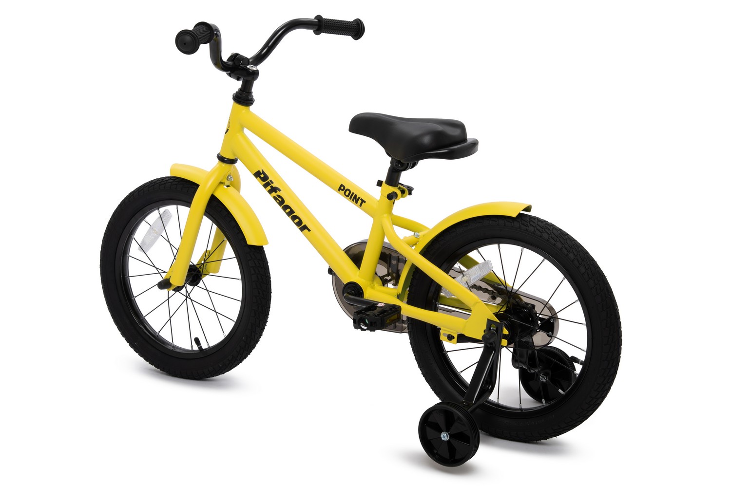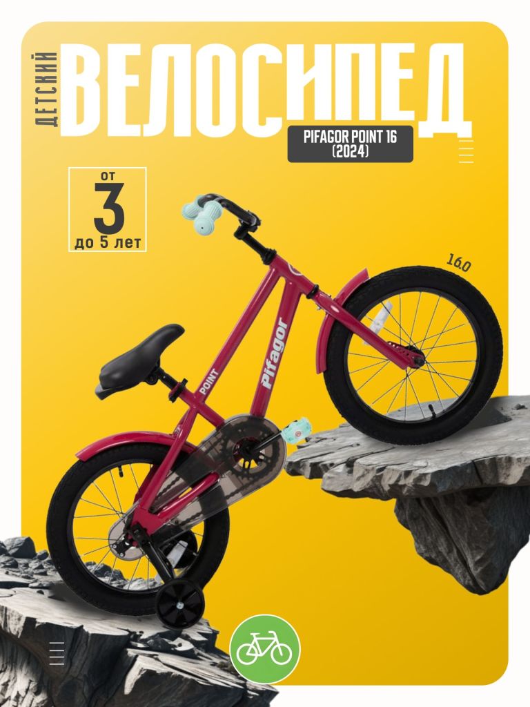 Велосипед, предназначенный для детей в возрасте от трех до шести лет, без переключения передач. Технические особенности: прочная стальная рама, жесткая стальная вилка, одинарные стальные обода, ножной педальный тормоз, съемные боковые колеса, полная защита цепи, крылья, звонок, насос, ключи для сборки велосипеда, набор стикеров. Подходит для обучения и прогулочного катания в городских условиях. Диаметр колес - 16 дюймов. Вес - 9,1 кг.