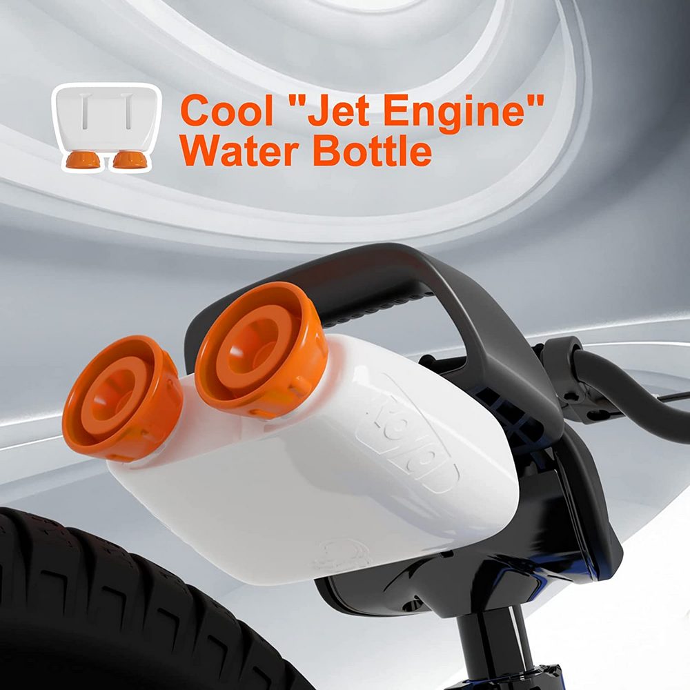 Детский велосипед-беговел 2 в 1 без переключения передач. Технические особенности: стальная рама, жесткая стальная вилка, одинарные алюминиевые обода, передний клещевой тормоз + задний барабанный, полная защита цепи, быстросъемные шатуны, питьевая бутылочка в виде ракеты, звонок. Подходит для прогулочного катания в городских условиях. Диаметр колес: 14 дюймов. Вес - 8,6 кг.