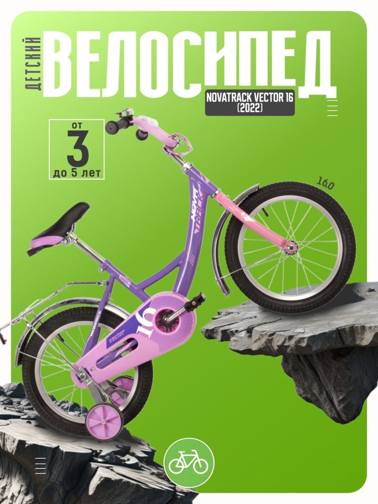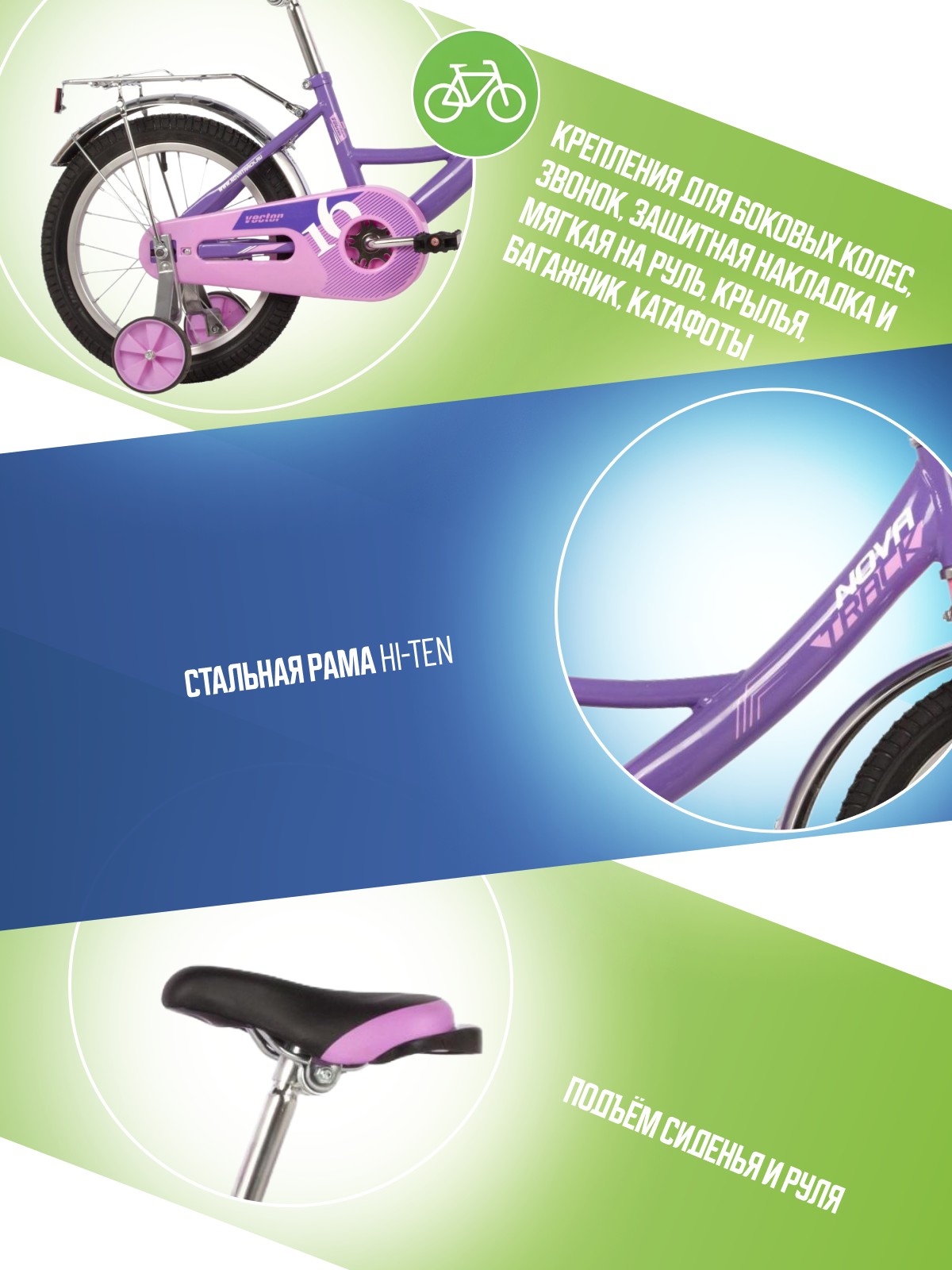 Велосипед, предназначенный для детей в возрасте от трех до шести лет, без переключения передач. Технические особенности: стальная рама Hi-Ten, жесткая стальная вилка, одинарные алюминиевые обода, ножные педальные тормоза, защита цепи, съемные боковые колеса, длинные крылья, багажник, поддерживающая ручка, мягкая накладка на руле, звонок. Подходит для обучения и легких прогулок. Диаметр колес - 16 дюймов. Вес - 11 кг.