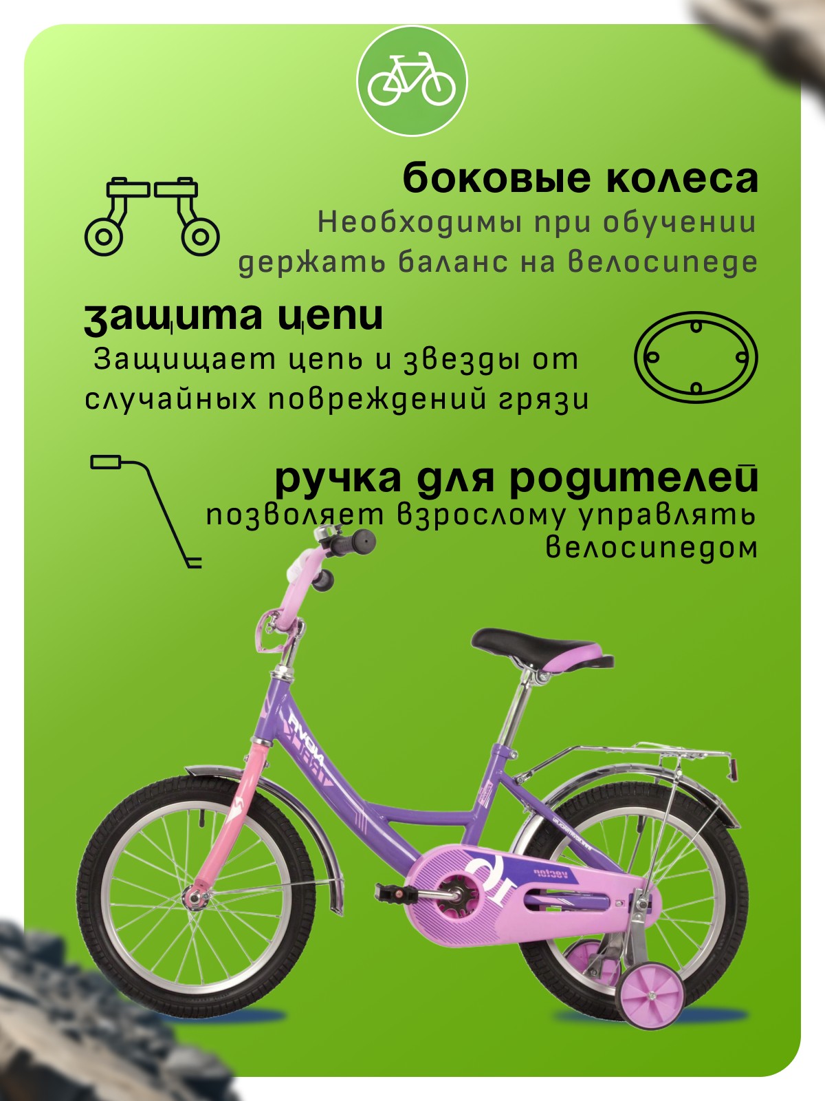 Особенности велосипеда: Багажник, Боковые колеса, Защита цепи, Защитная накладка на руль, Звонок, Катафоты, Крепления для боковых колес, Крылья, Мягкая накладка на руль, Ножной тормоз, Ручка для родителей.