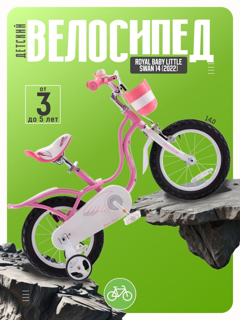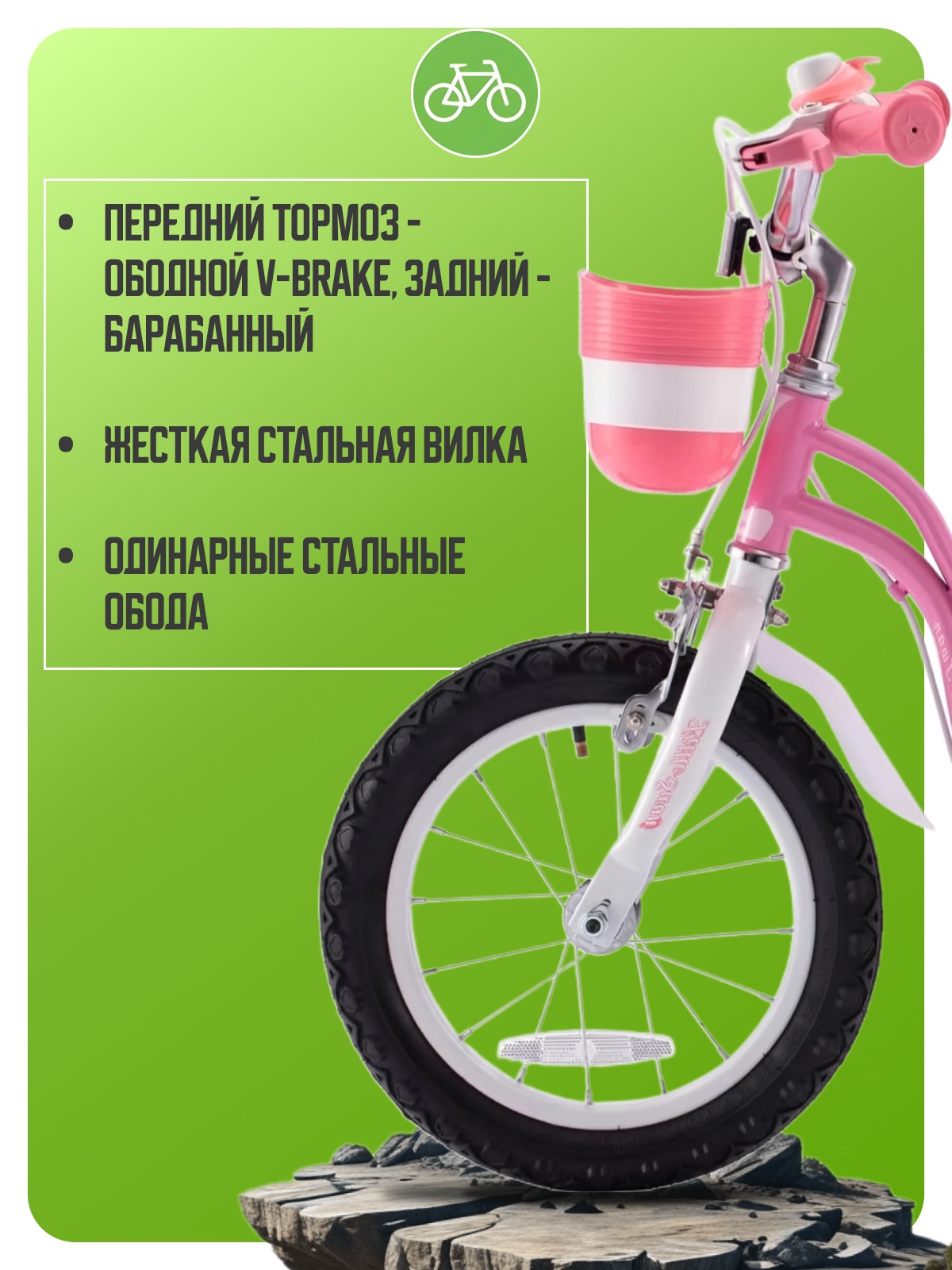 Велосипед, предназначенный для детей в возрасте от двух до четырех лет, без переключения передач. Технические особенности: прочная стальная рама, жесткая стальная вилка, одинарные стальные обода, передний тормоз - ободной V-Brake, задний - барабанный, полная защита цепи, съемные боковые колеса, передняя корзинка, звонок. Подходит для обучения и легких прогулок. Диаметр колес - 14 дюймов. Вес - 9 кг.