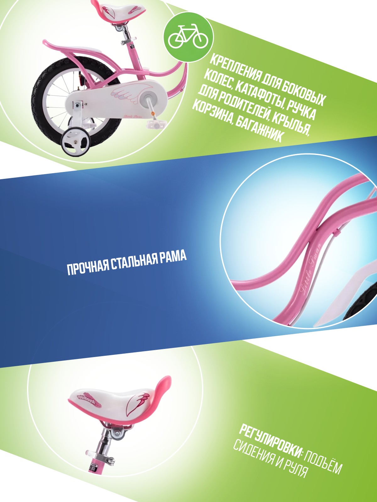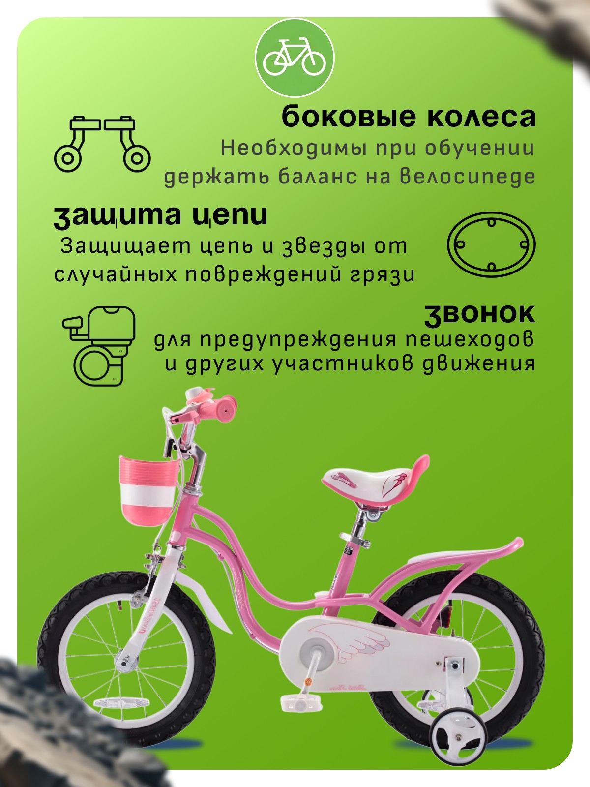 Особенности велосипеда: Багажник, Боковые колеса, Защита цепи, Звонок, Катафоты, Корзина, Крепления для боковых колес, Крылья, Ручка для родителей.
