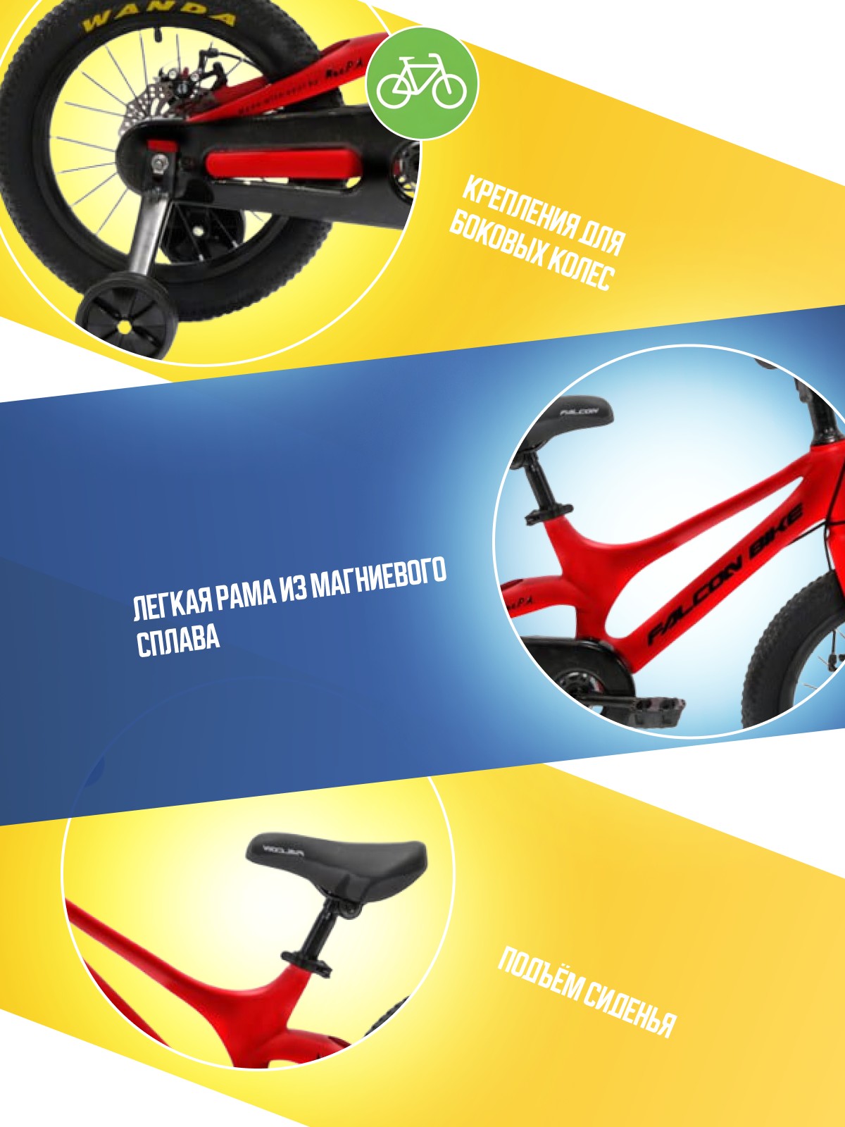 Особенности велосипеда: Боковые колеса, Дисковые тормоза, Защита цепи, Звонок, Крепления для боковых колес.