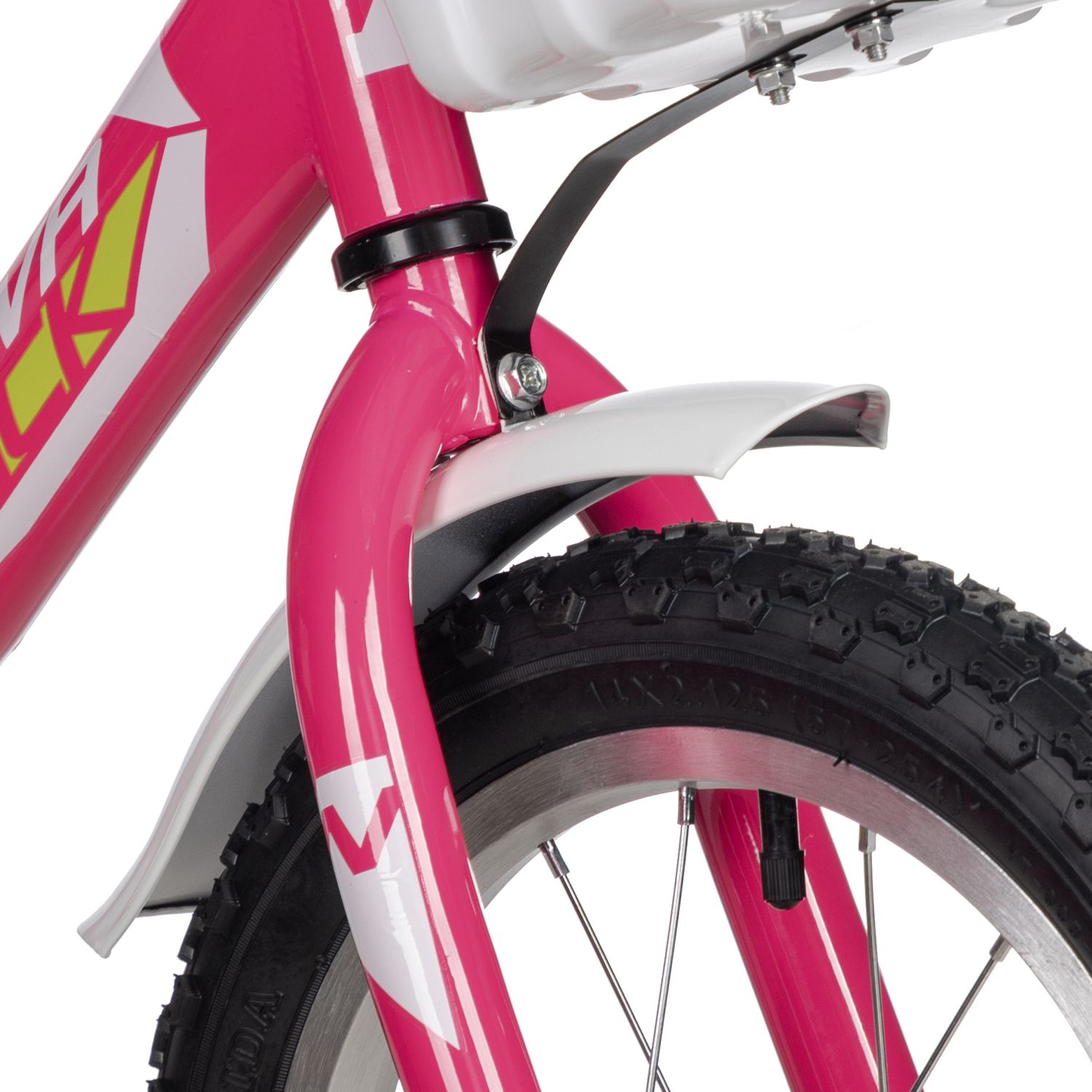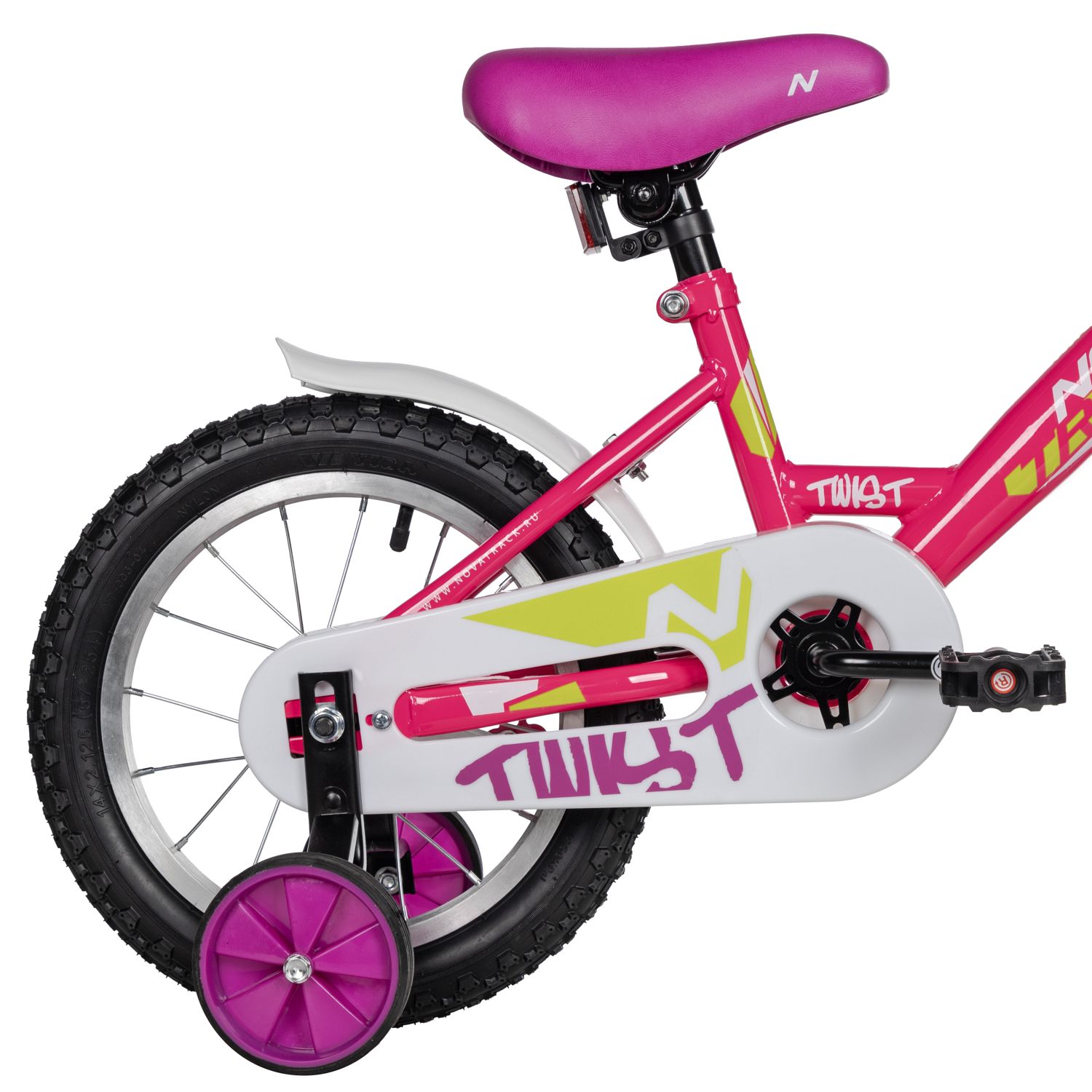 Велосипед, предназначенный для детей в возрасте от двух до четырех лет, без переключения передач. Технические особенности: прочная стальная рама, жесткая стальная вилка, одинарные алюминиевые обода (ниппель AV), ножной педальный тормоз, полная защита цепи, съемные боковые колеса, крылья, мягкая накладка на руле, звонок, катафоты. Подходит для обучения и прогулочного катания в городских условиях. Диаметр колес - 14 дюймов. Вес - 8,3 кг.