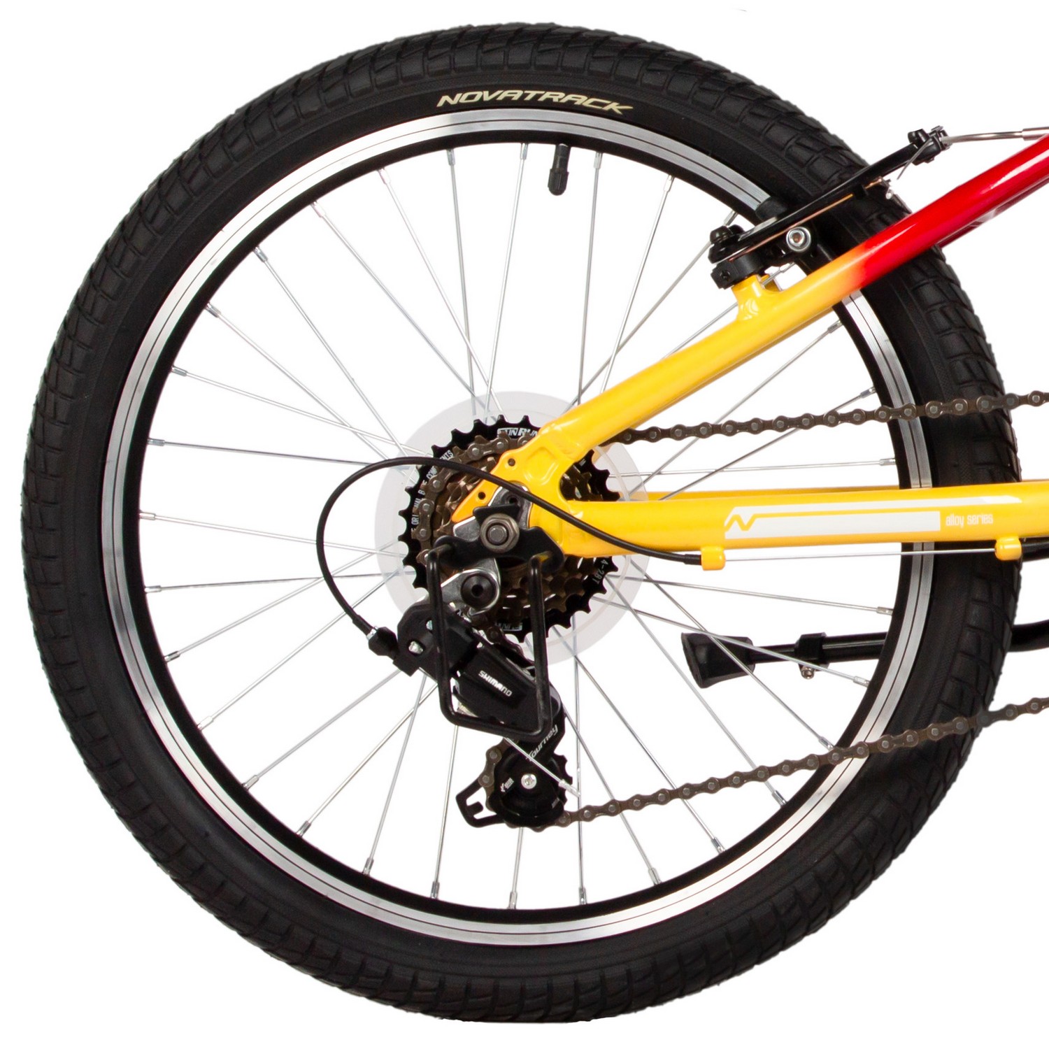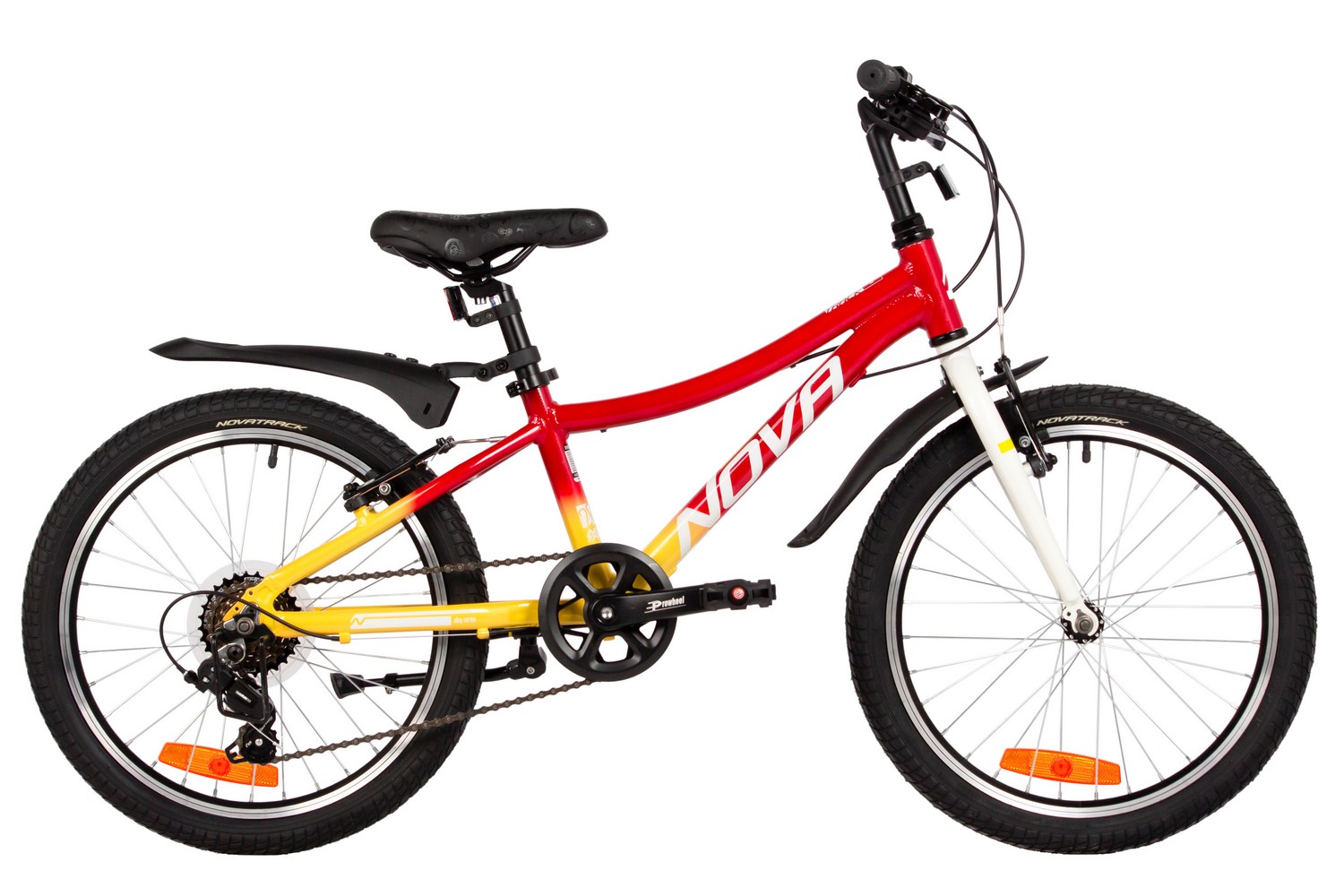 Велосипед, предназначенный для детей в возрасте от пяти до девяти лет, с оборудованием начального класса Shimano, 6 скоростей. Технические особенности: легкая алюминиевая рама (частично скрытая проводка), жесткая стальная вилка, двойные алюминиевые обода (под AV ниппель), ободные механические тормоза STG V-Brake, защита цепи, защита заднего переключателя, подножка, звонок, катафоты. Подходит для обучения и прогулочного катания в городских условиях. Диаметр колес - 20 дюймов. Вес - 12,5 кг.