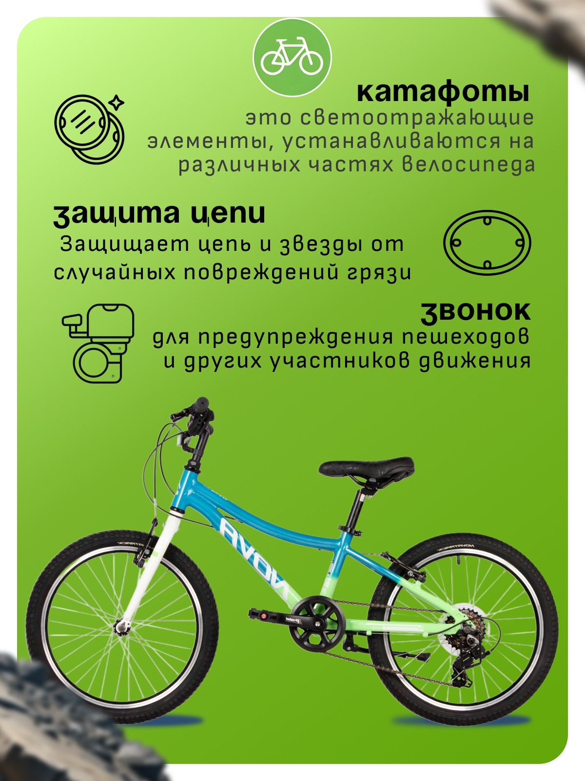 Особенности велосипеда: Алюминиевая рама, Двойные обода, Защита цепи, Звонок, Катафоты, Многоскоростной, Подножка.