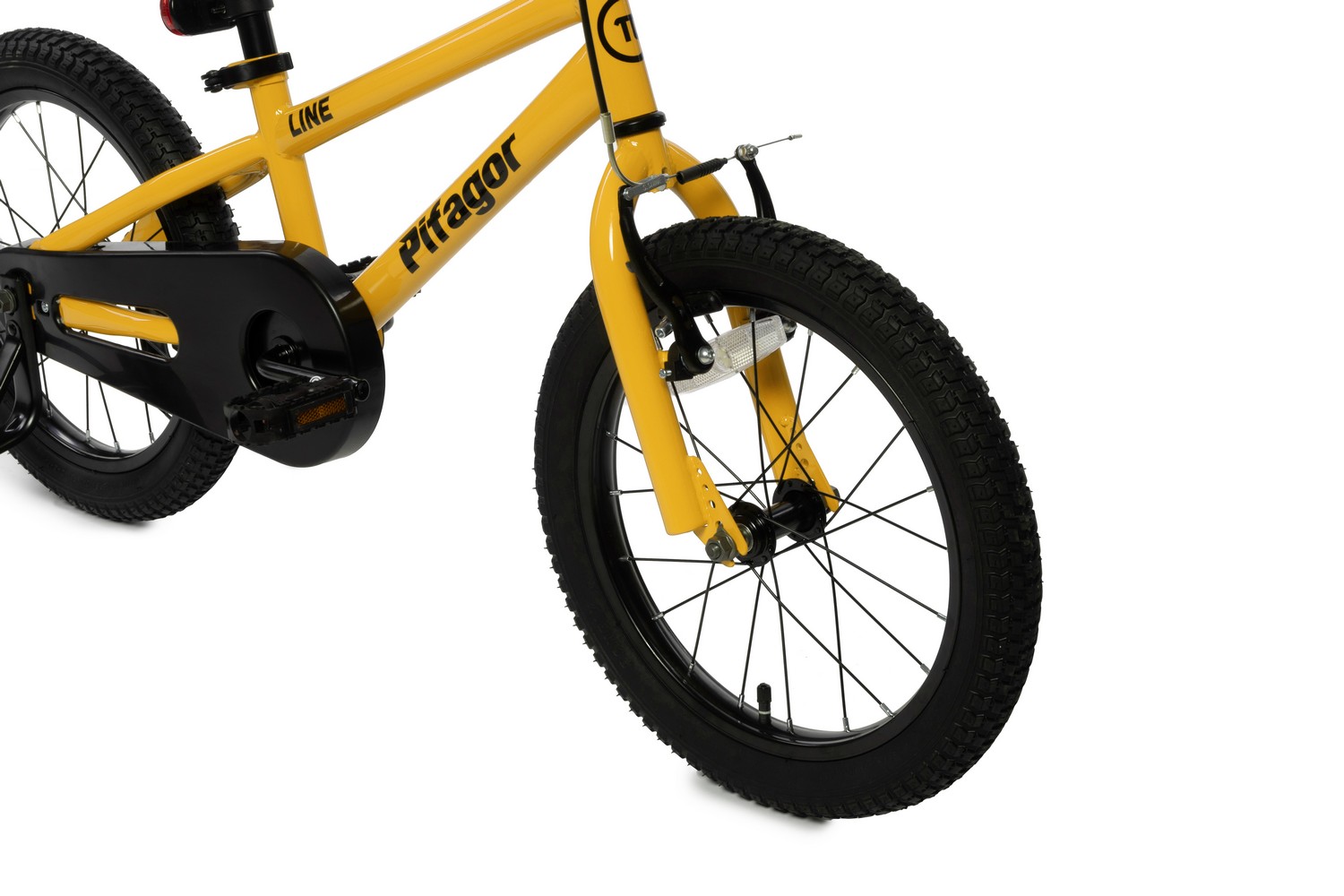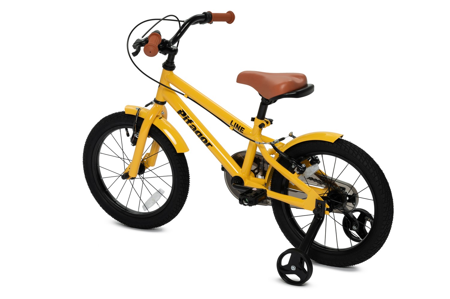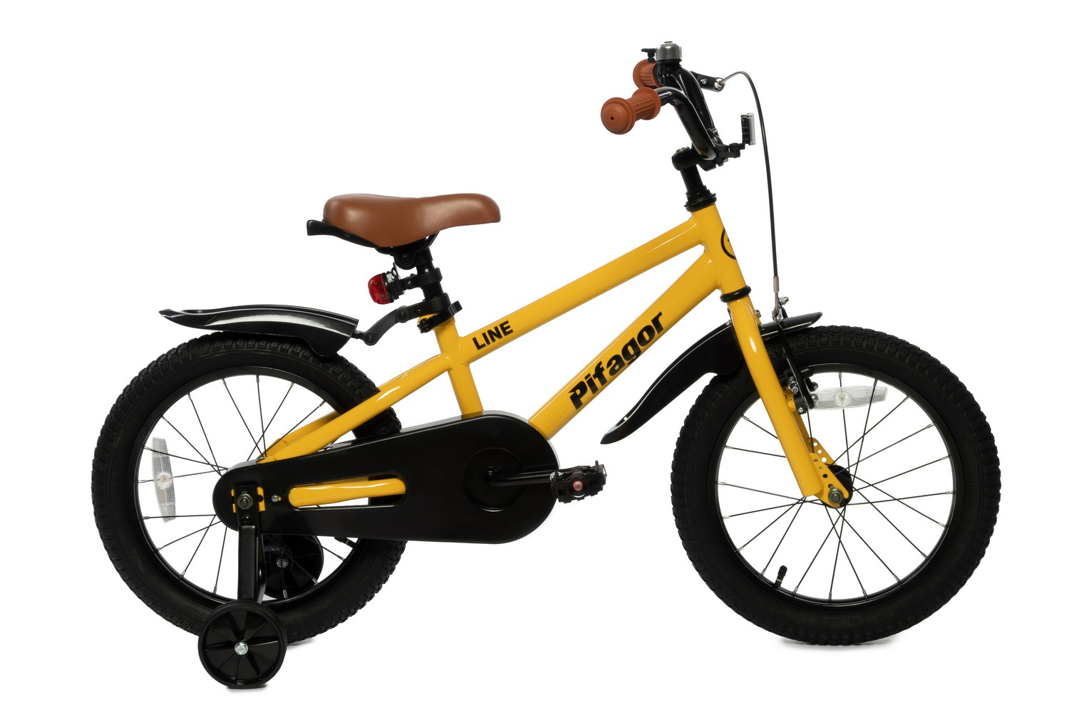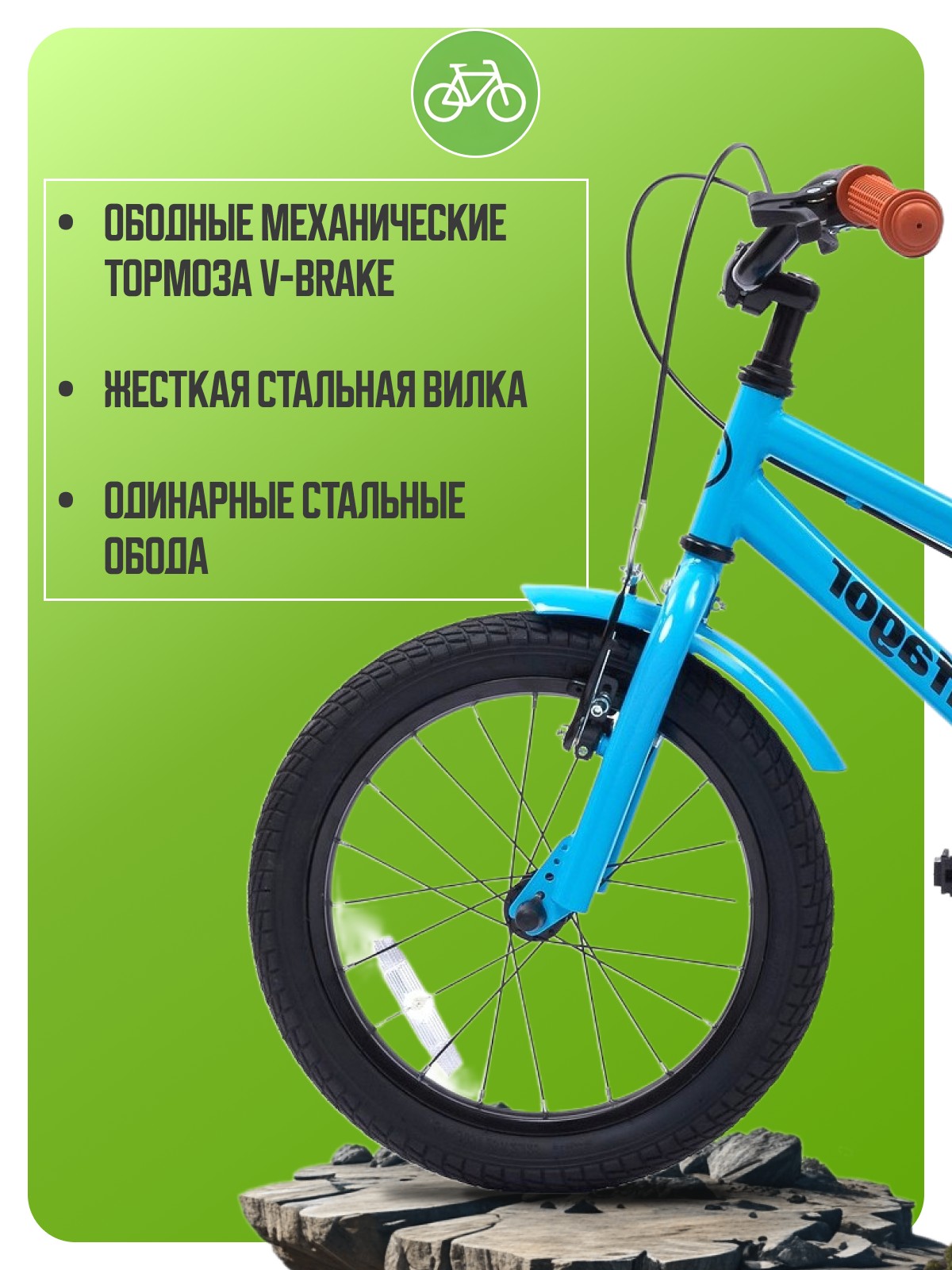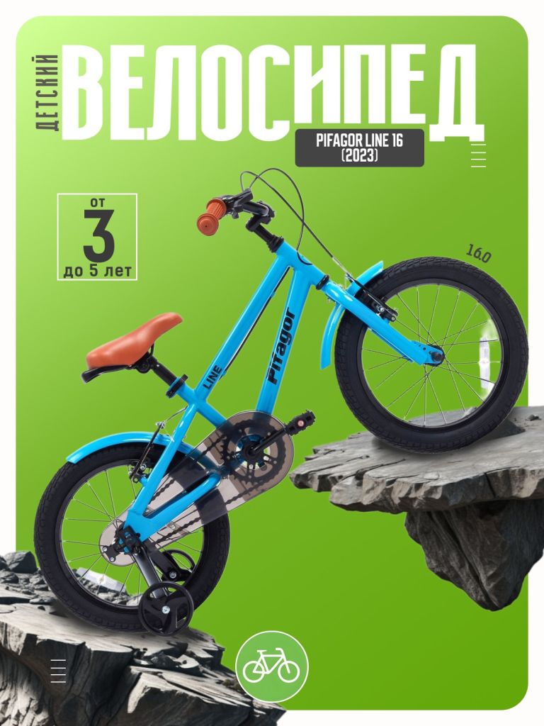 Велосипед, предназначенный для детей в возрасте от двух до четырех лет, без переключения передач. Технические особенности: стальная рама, жесткая стальная вилка, одинарные стальные обода, ободные механические тормоза V-brake, полная защита цепи, съемные боковые колеса, крылья, звонок, задний фонарик, насос, ключи для сборки. Подходит для обучения и прогулочного катания в городских условиях. Максимальная нагрузка: до 50 кг. Диаметр колес - 16 дюймов. Вес - 8,8 кг.