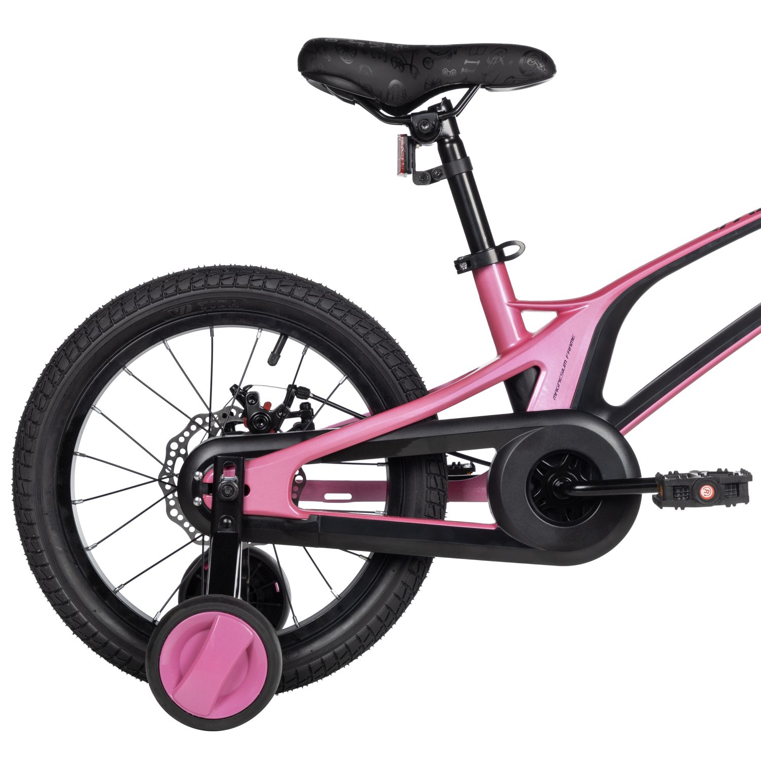 Особенности велосипеда: Боковые колеса, Дисковые тормоза, Защита цепи, Звонок, Катафоты, Крепления для боковых колес.
