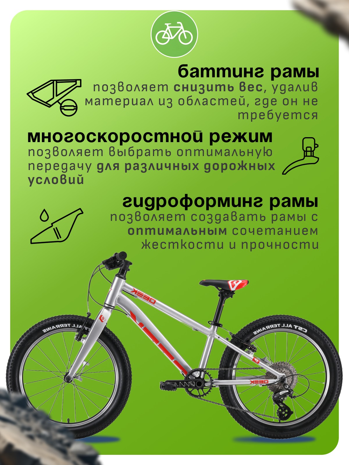 Алюминиевая рама, Баттинг рамы, Гидроформинг рамы, Двойные обода, Многоскоростной