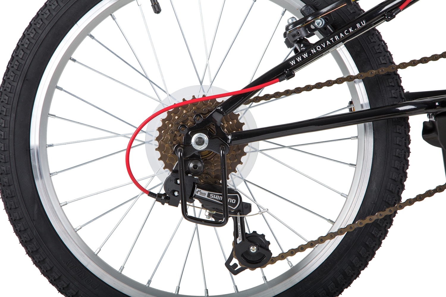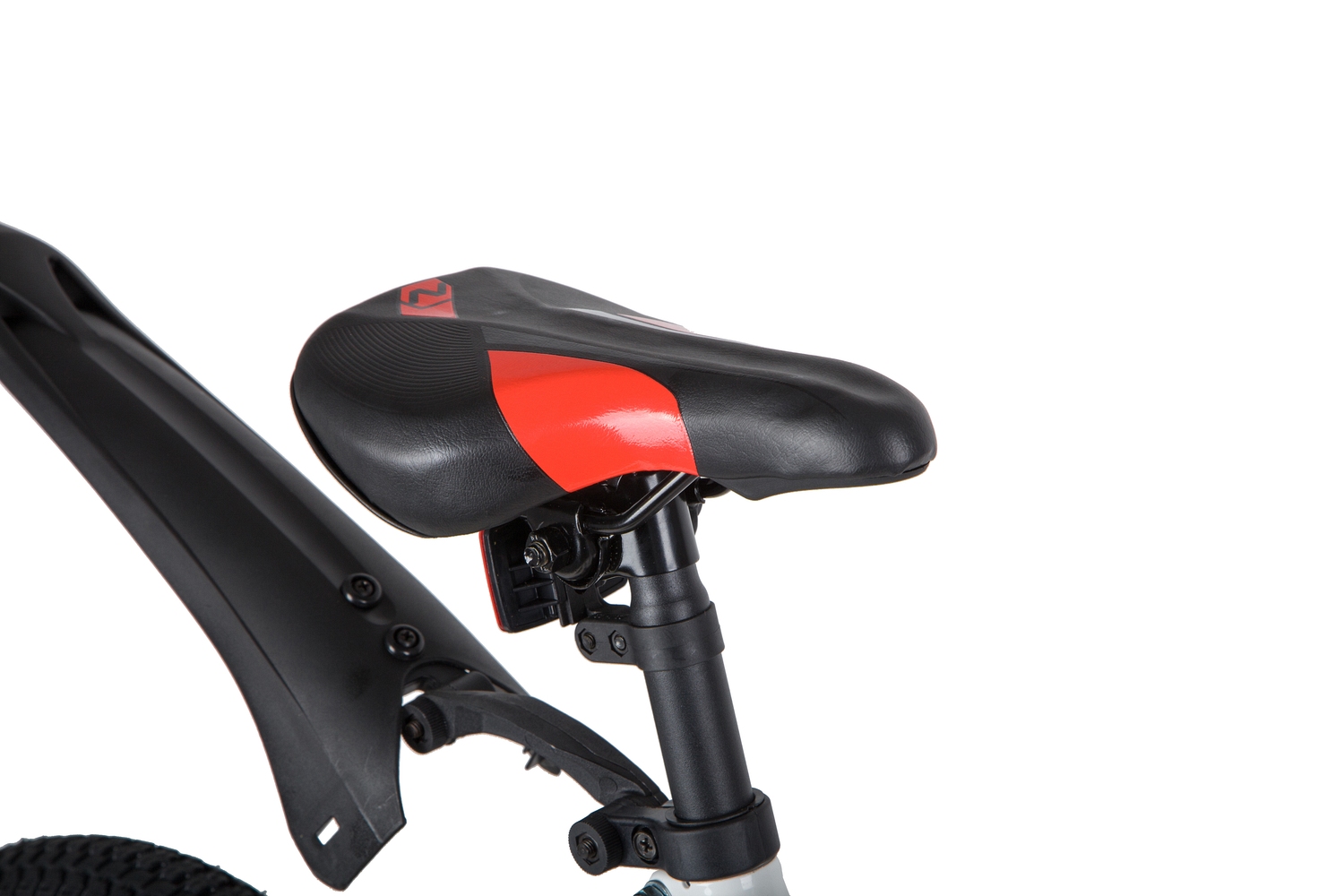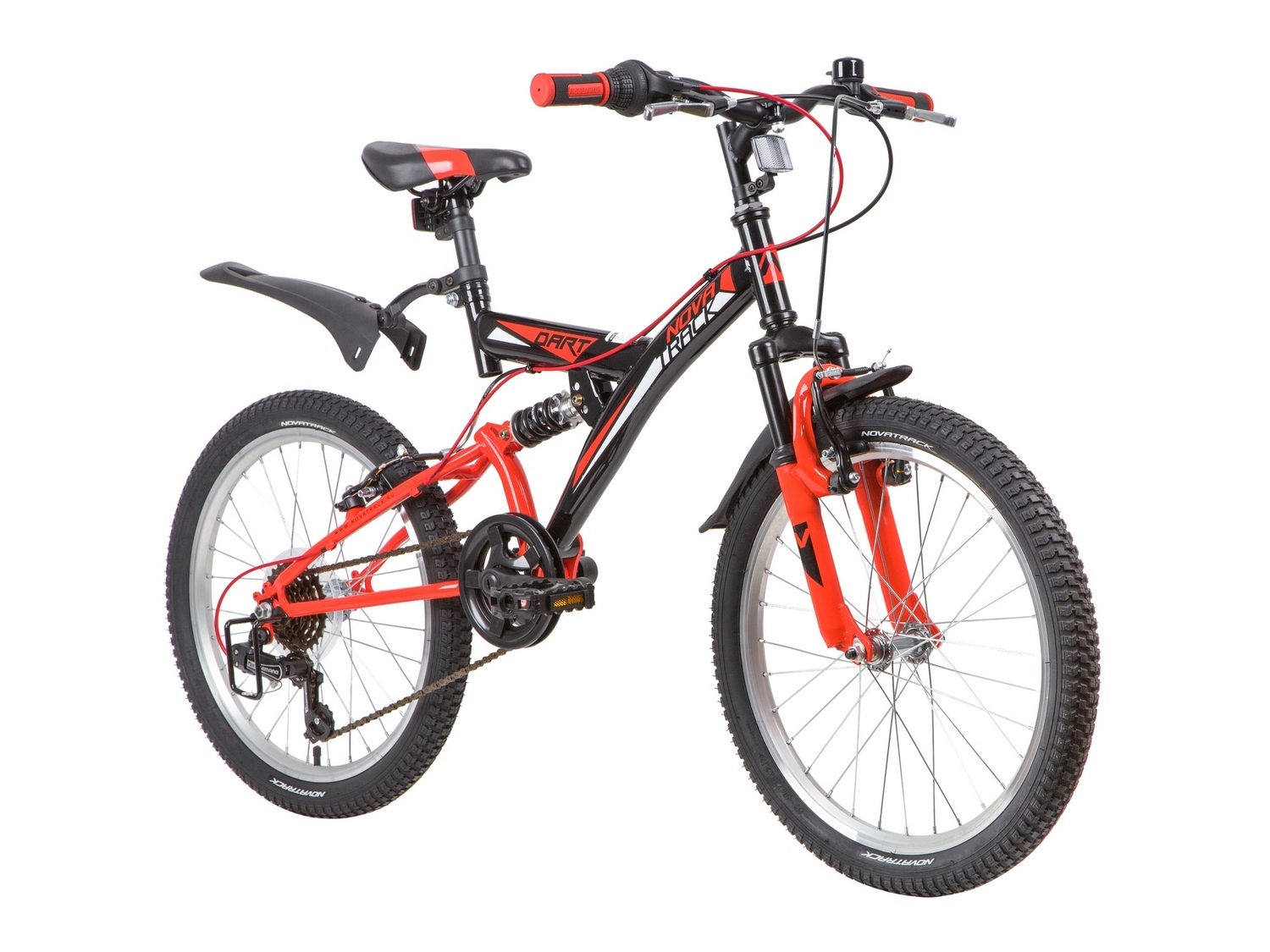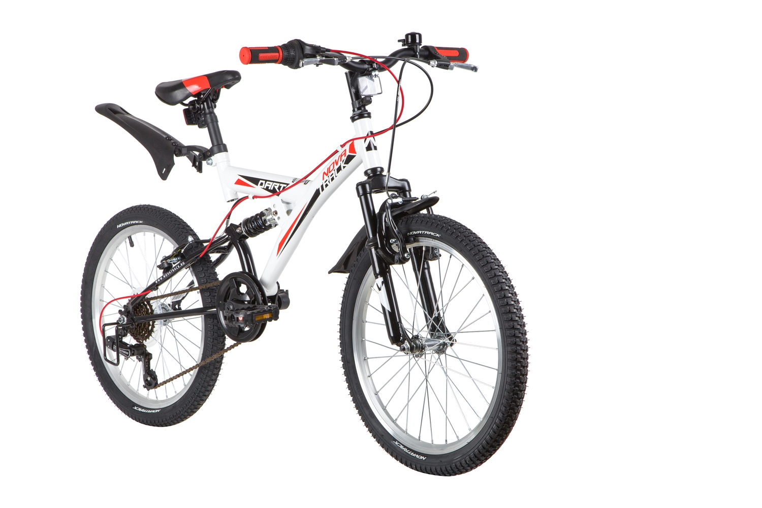 Двухподвес, предназначенный для детей в возрасте от пяти до девяти лет, с оборудованием начального класса Shimano, 6 скоростей. Технические особенности: стальная рама Hi-Ten, амортизационная вилка, задний амортизатор, двойные алюминиевые обода, надежные ободные тормоза, защита заднего переключателя, подножка. Подходит для обучения и прогулочного катания в городских условиях. Диаметр колес - 20 дюймов. Вес - 13,8 кг.