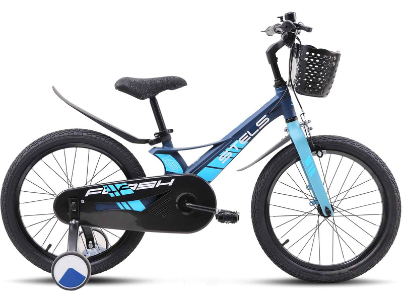 Велосипед, предназначенный для детей в возрасте от четырех до восьми лет, без переключения передач. Технические особенности: легкая рама из магниевого сплава (скрытая проводка), жесткая вилка из магниевого сплава (крепление калипера IS), одинарные стальные обода (под AV ниппель), передний тормоз - ободной клещевой, задний тормоз - барабанный (роллерный), полная защита цепи, пластиковые крылья, съемные боковые колеса, передняя корзинка, звонок. Подходит для обучения и прогулочного катания в городских условиях. Диаметр колес - 18 дюймов. Вес - 9,5 кг.