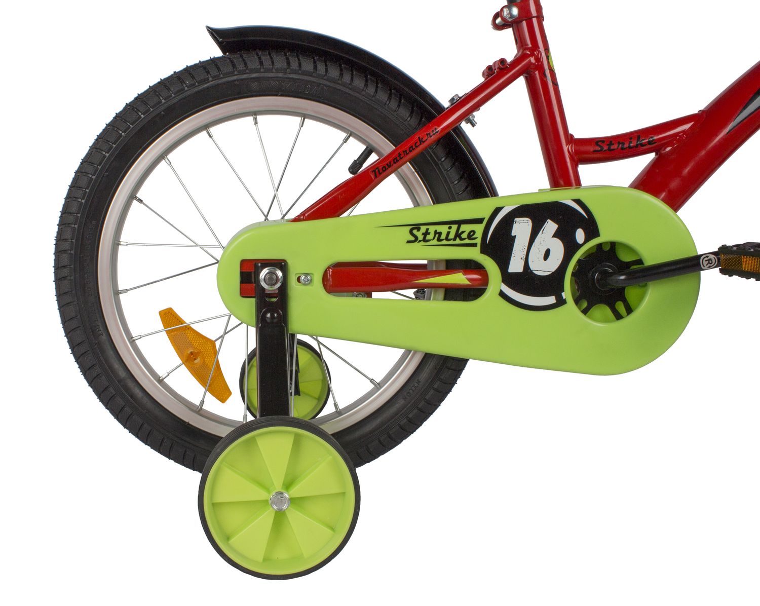 Особенности велосипеда: Боковые колеса, Защита цепи, Защитная накладка на руль, Звонок, Катафоты, Крепления для боковых колес, Крылья, Мягкая накладка на руль, Ножной тормоз, Ручка для родителей.